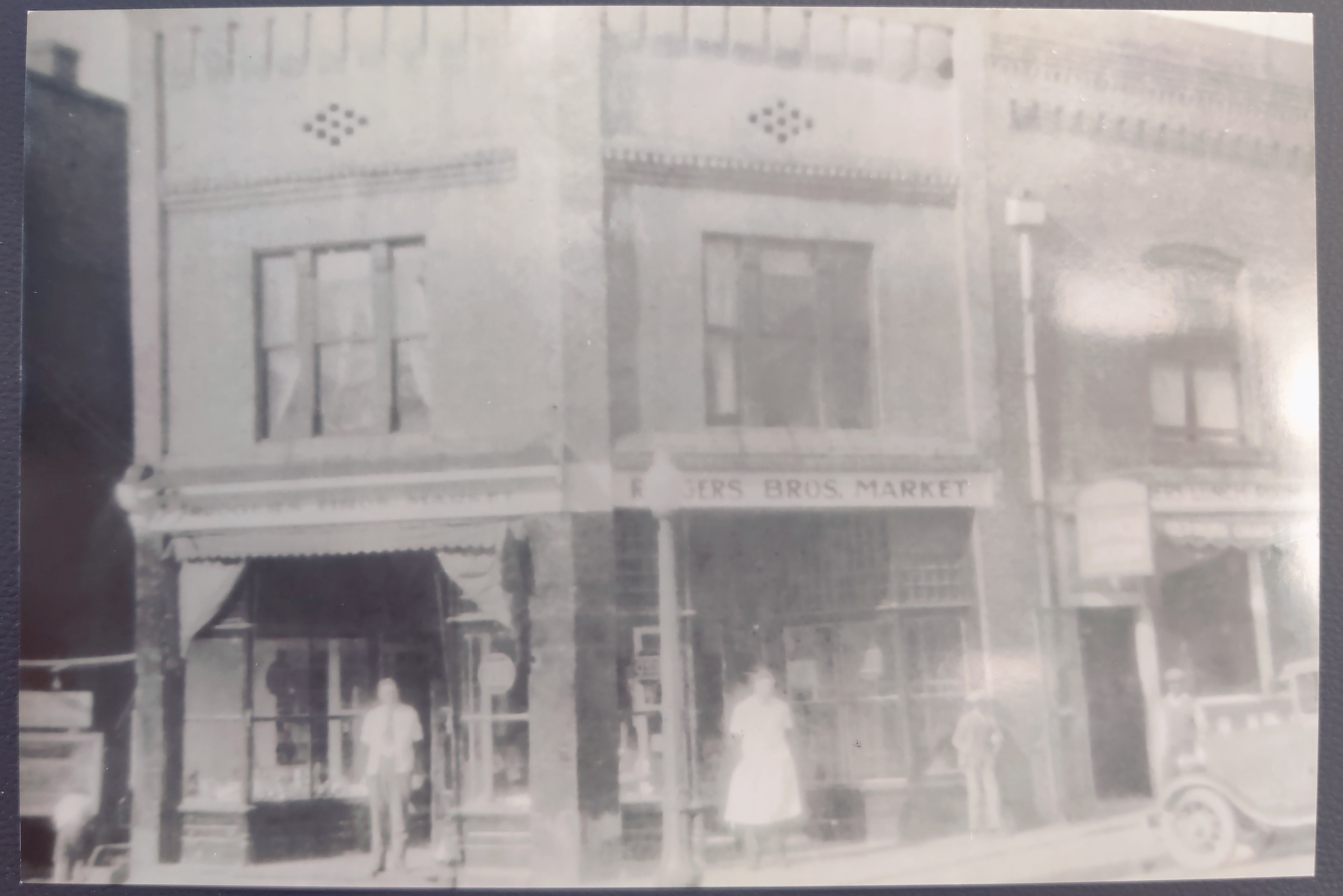 - Photograph of Rogers Bros. Market on Trade Street corner