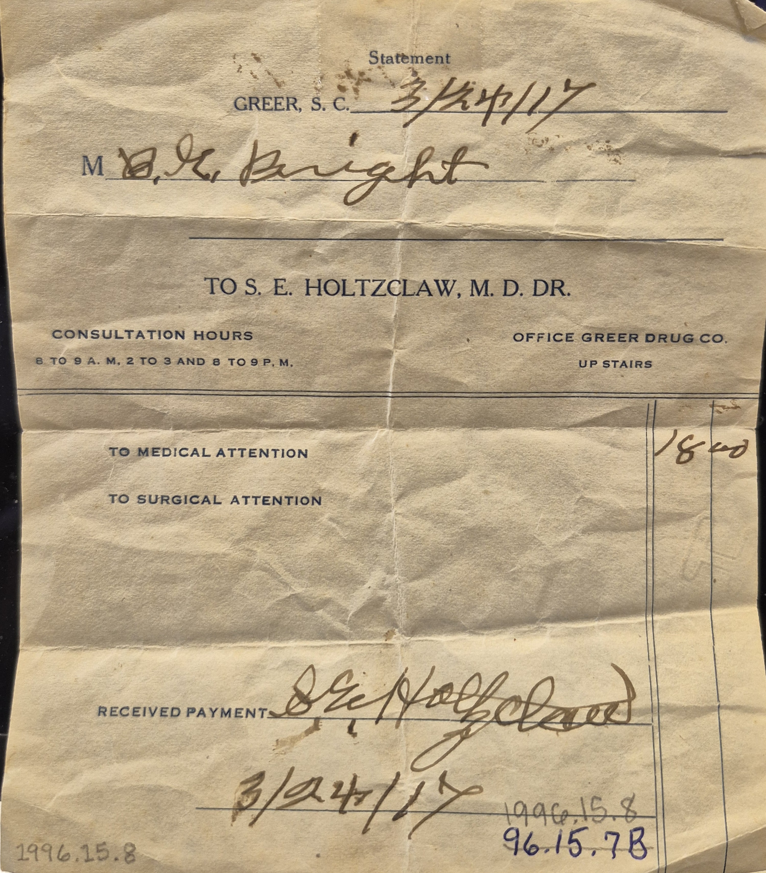 - Invoice: Dr. S. E. Holtzclaw for B. R. Bright