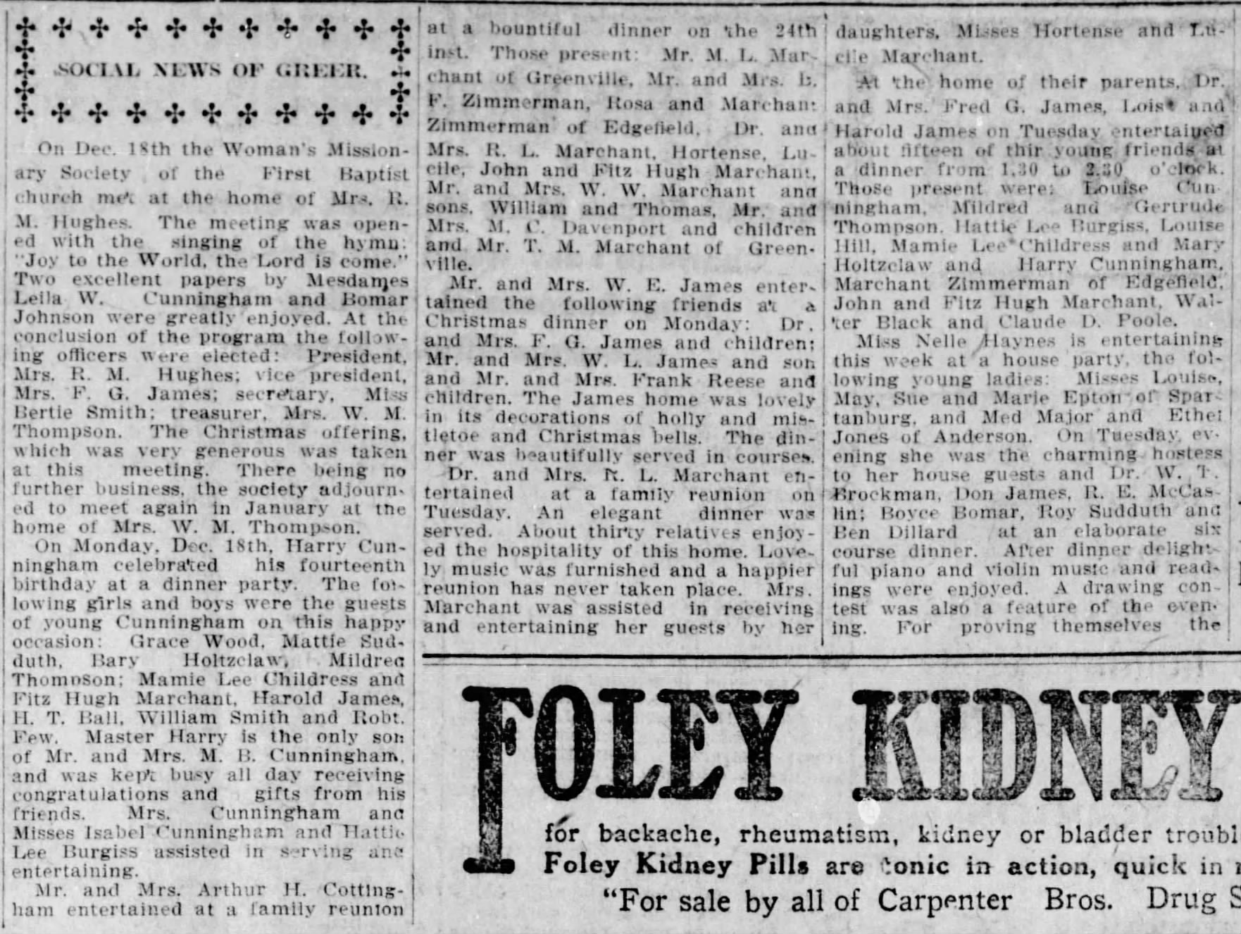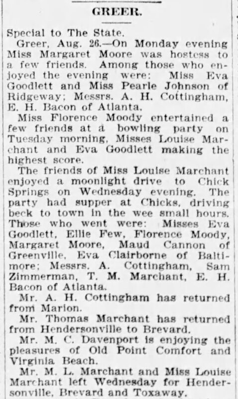 - Martin Luther Marchant, Sr., his wife Mary Smith Marchant, and their children played significant roles in the founding and growth of Greer and the rest of upstate South Carolina.