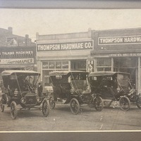 Photograph of Thompson Hardware Co. and Fords