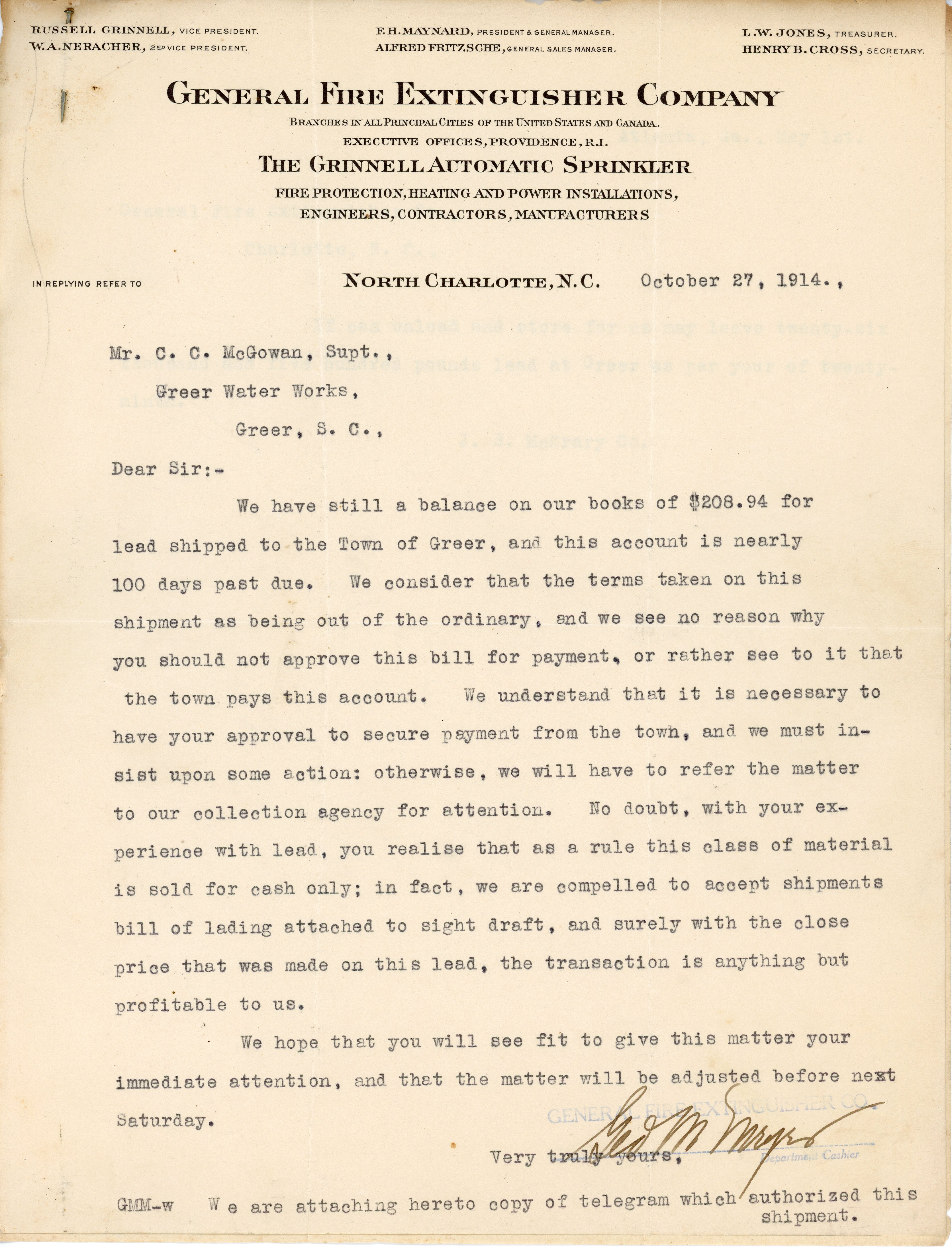 - Letter 27 October 1914 George. M. M [Illegible] to C. C. McGowan