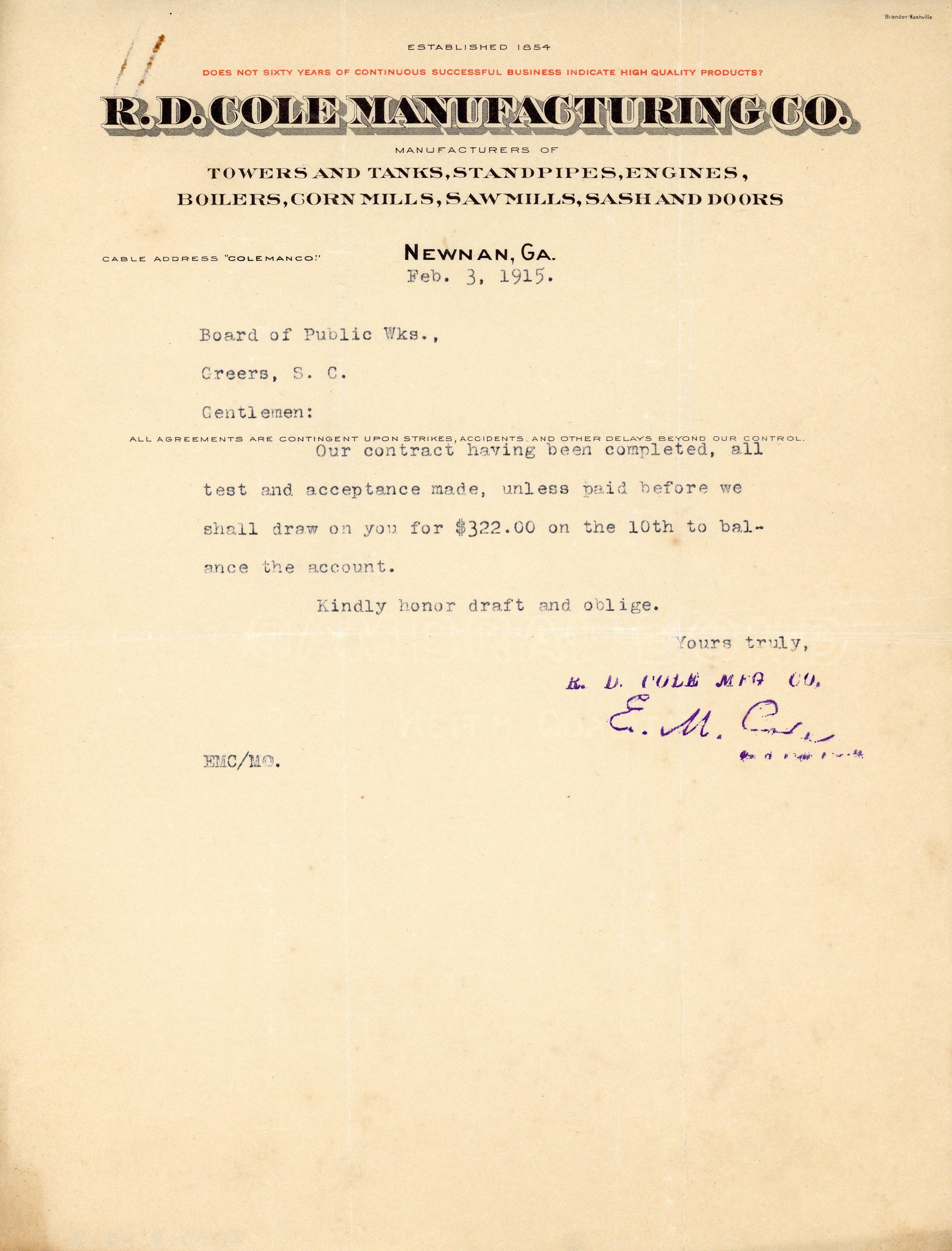 Letter 3 February 1915 E. M. C [illegible] to J. A. Robinson