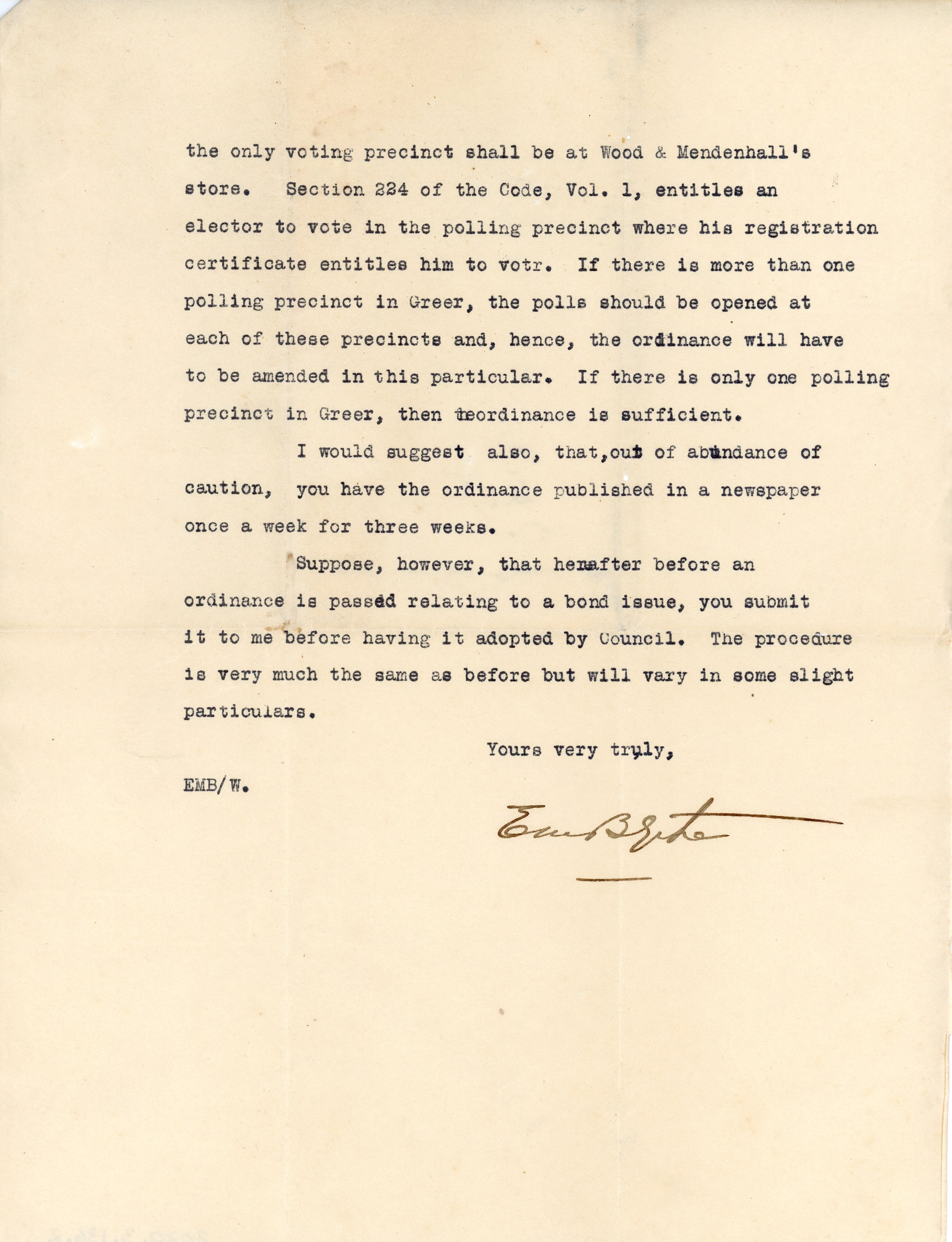 Letter 4 August 1915 E. M. B. [illegible] to T. E. Smith