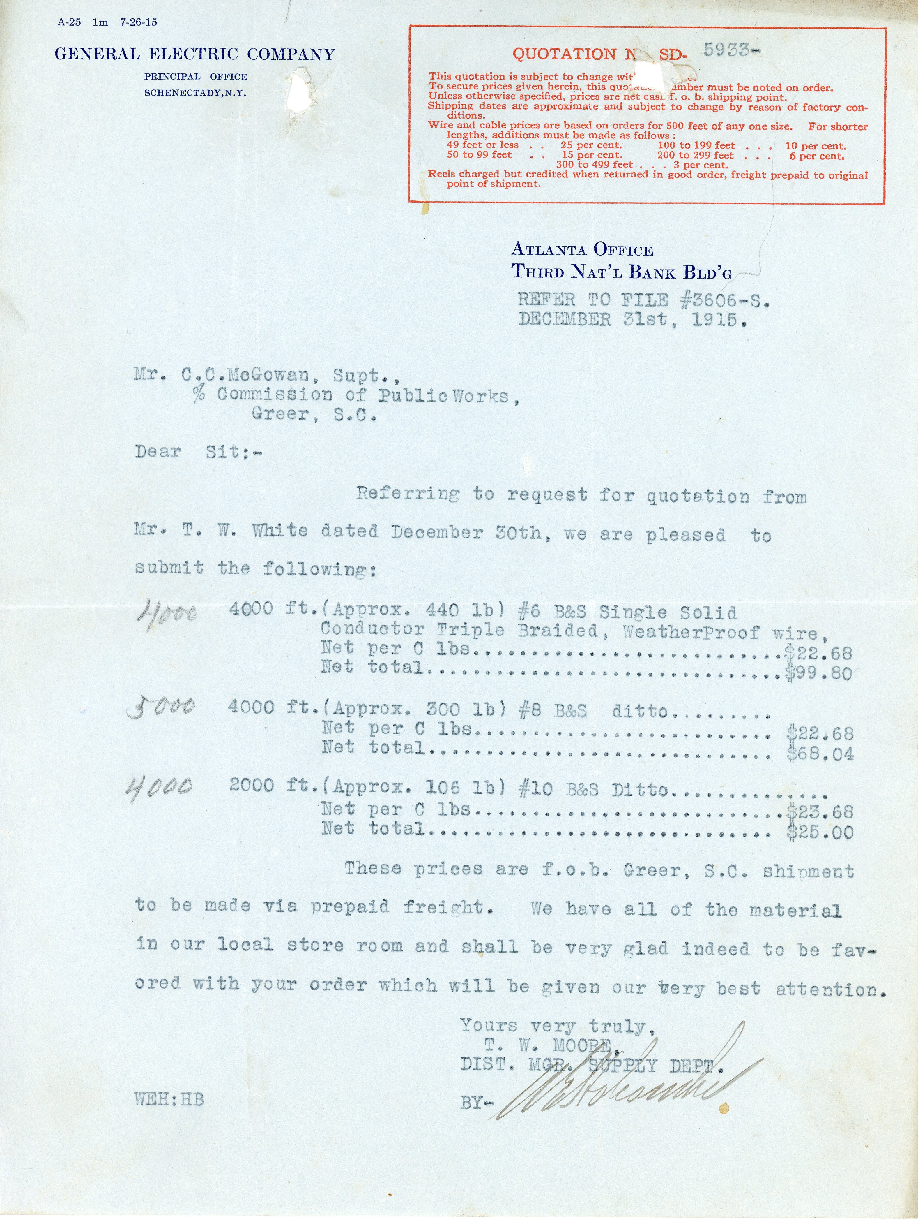 - Invoice 31 December 1915 T. W. Moore by W. E. H. [illegible] to C. C. McGowan