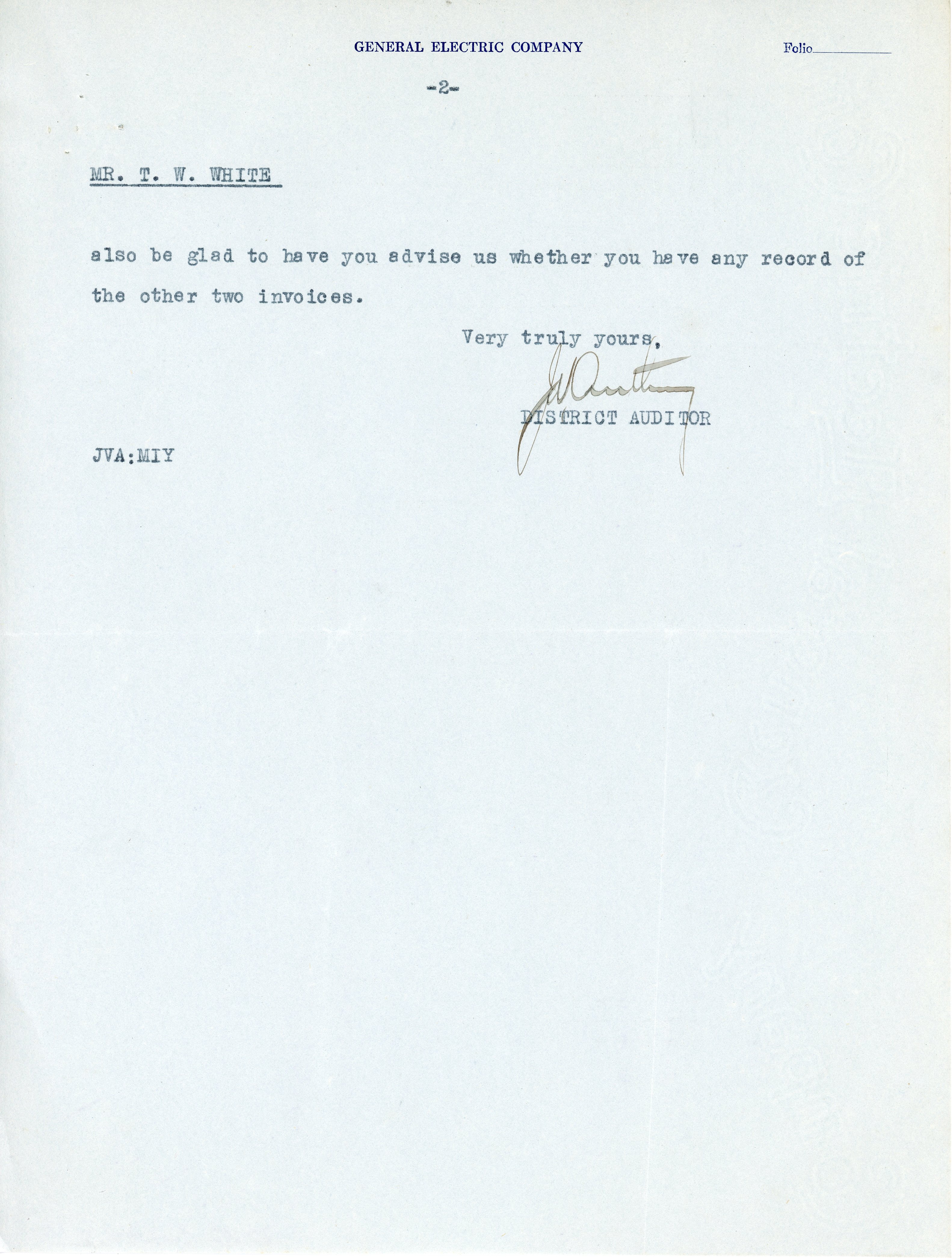 Part of Letter 12 January 1916 J. V. A. [illegible] to T. W. White
