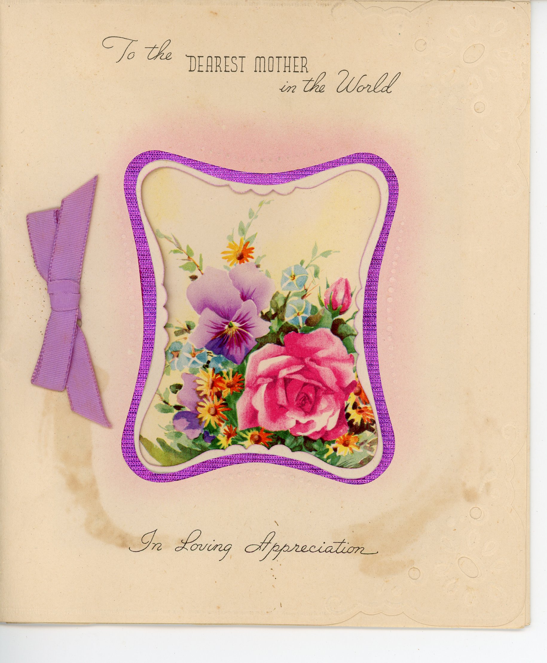 Part of 6 May 1949 Mother's Day Card From Ollie and Louie to J. T. Lindsey