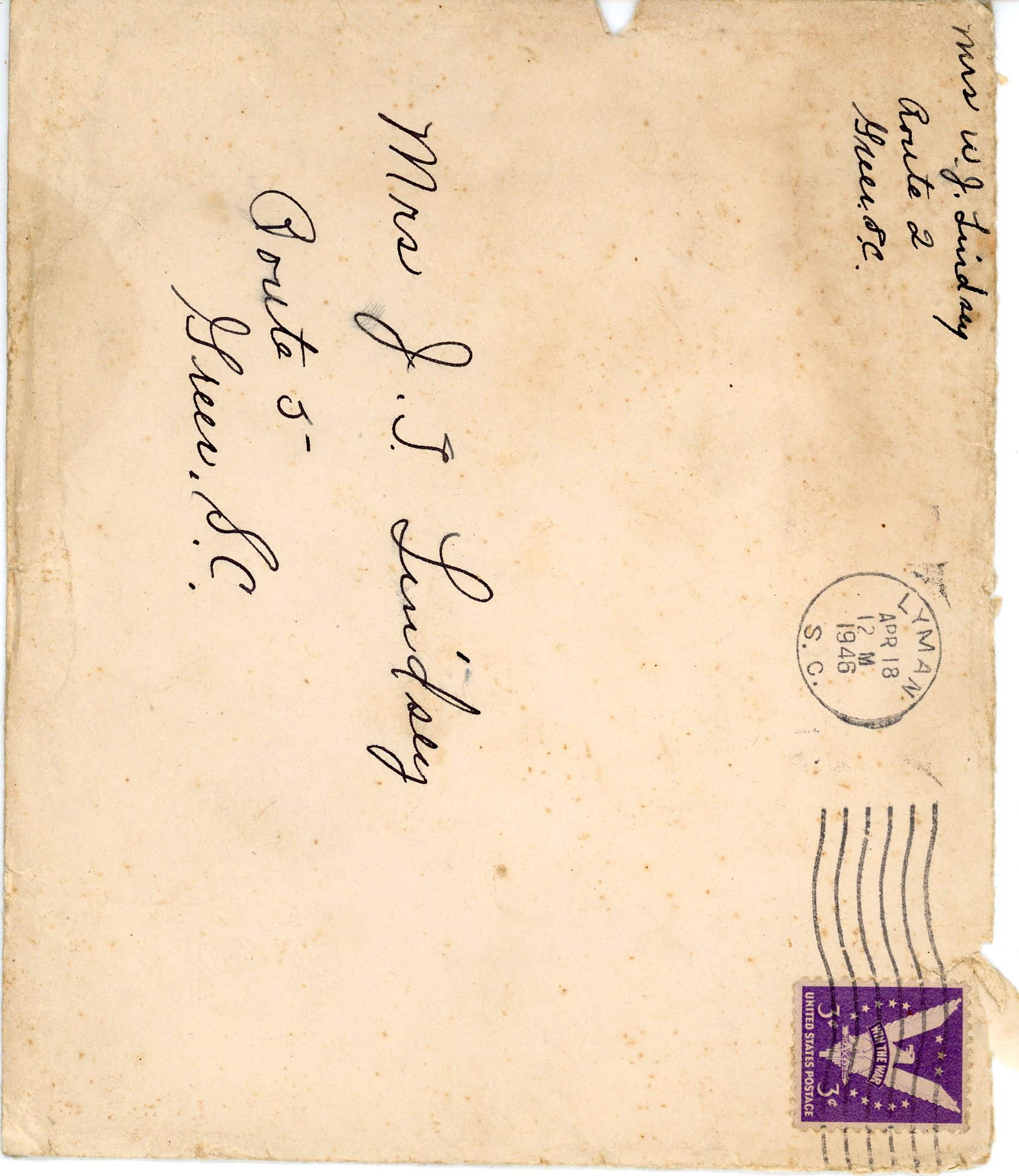18 April 1946 Envelope From Allie And Bill (W. J. Lindsey) to J. T. Lindsey