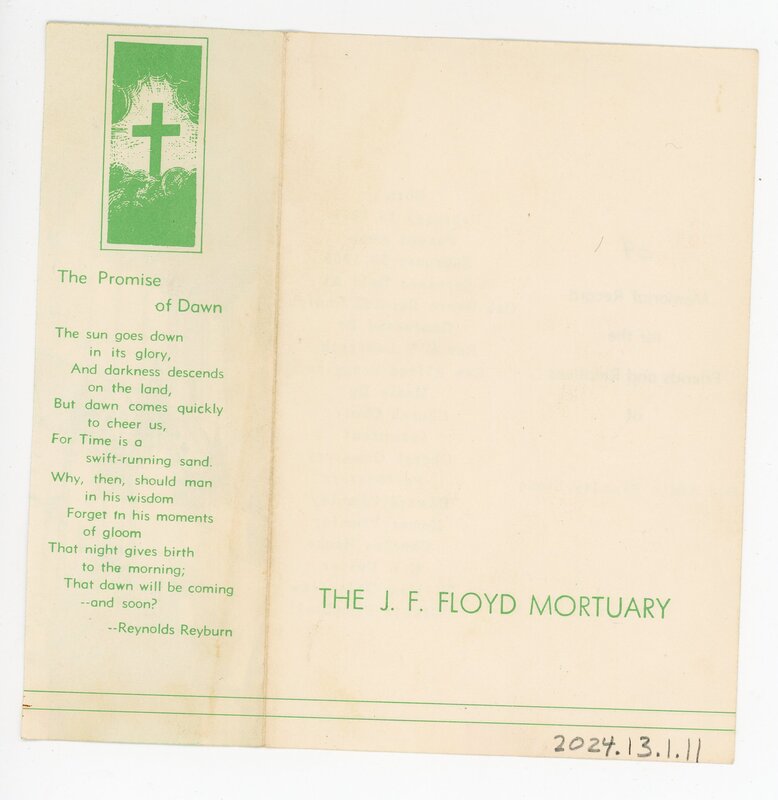 - Memorial Record of Addie Plumley Stone of J. F. Floyd Mortuary