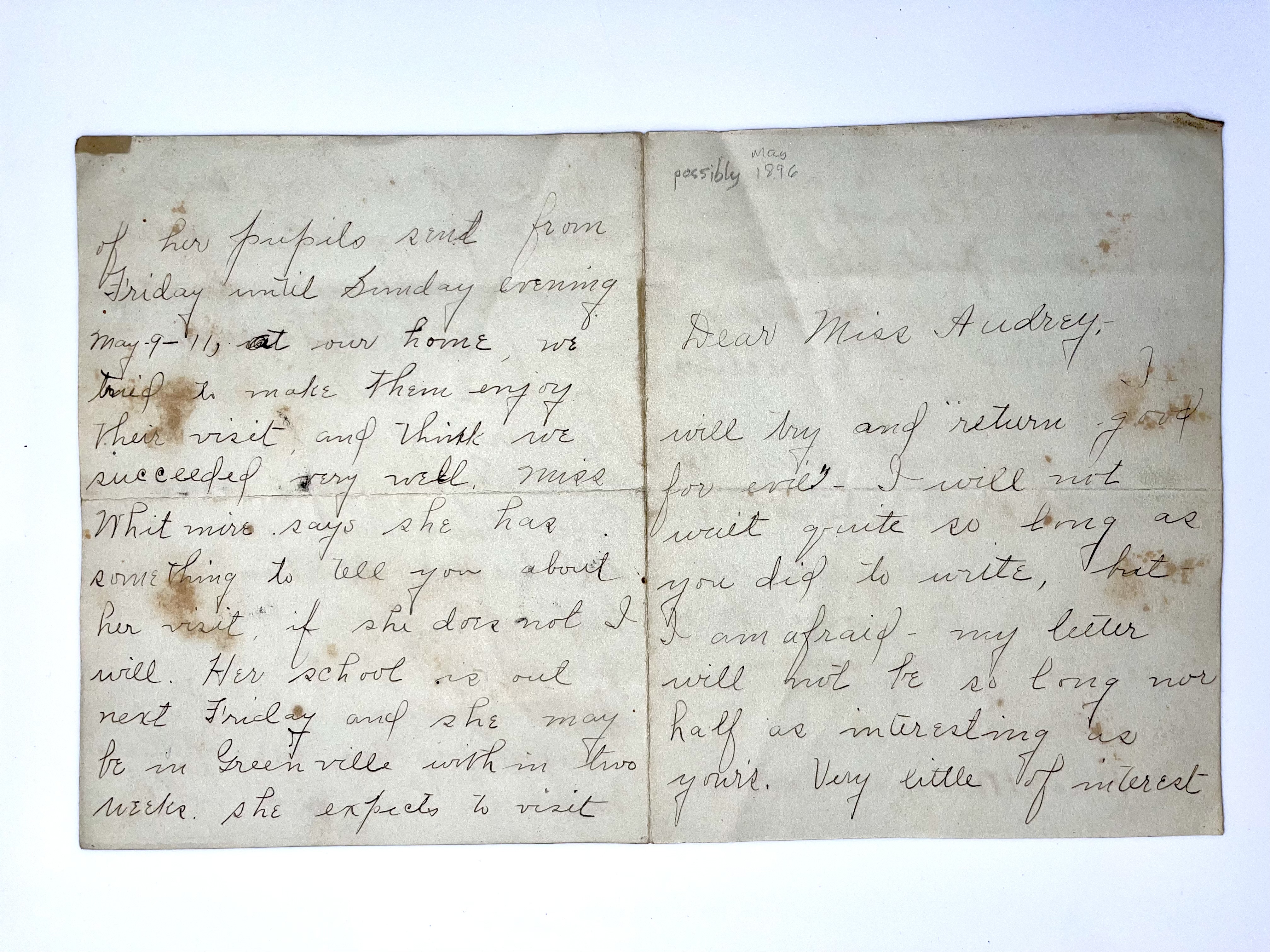 - Letter: 1896. J. H. Garner to Audrey Davis