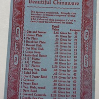 Coupons posses the value of 1 Cent to be redeemed for Beautiful Chinaware