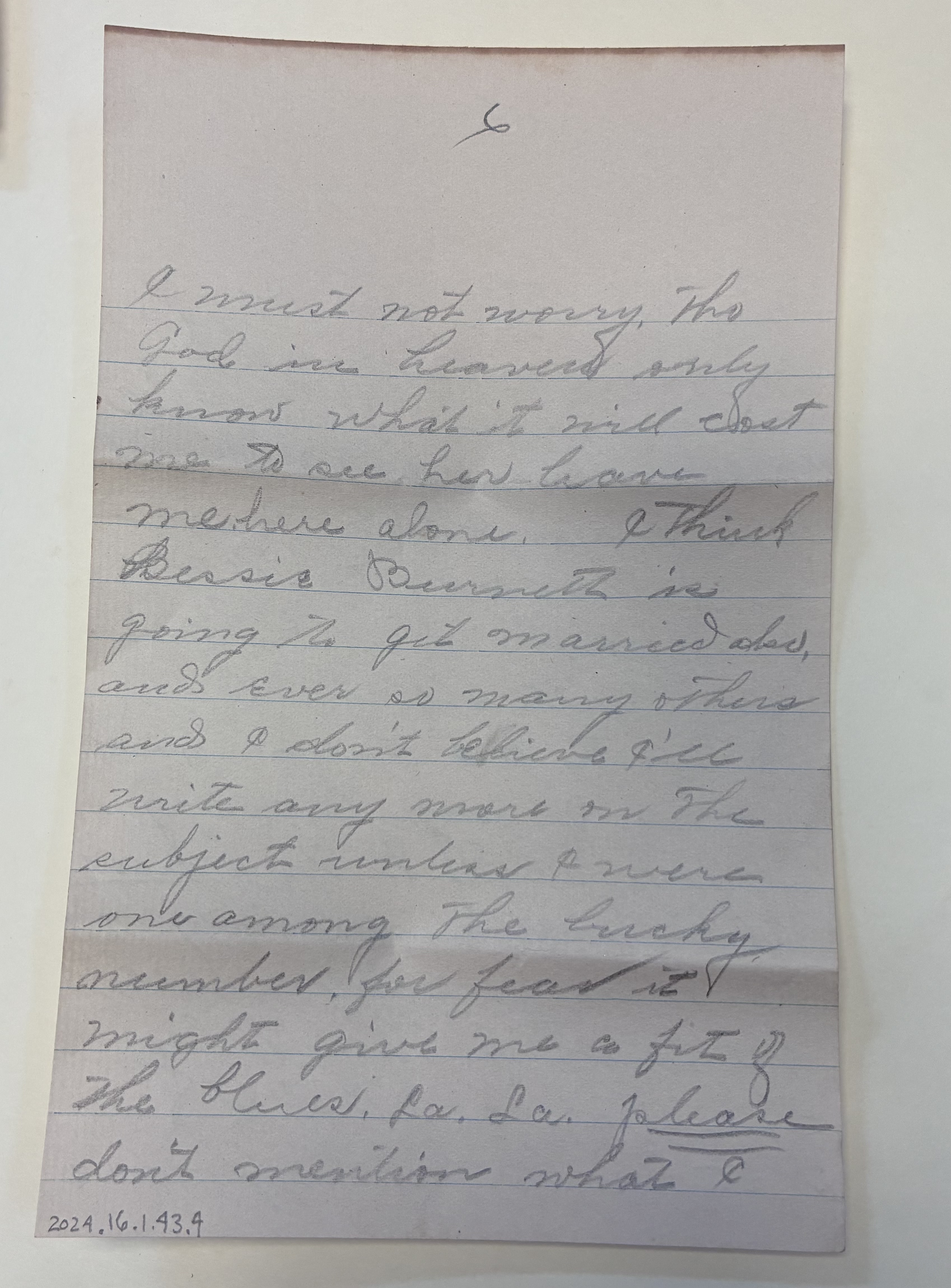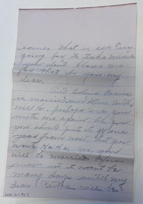 Letter appears to contain Maude's sadness at her friends getting married and a plea to Bertha to continue writing her - Date
