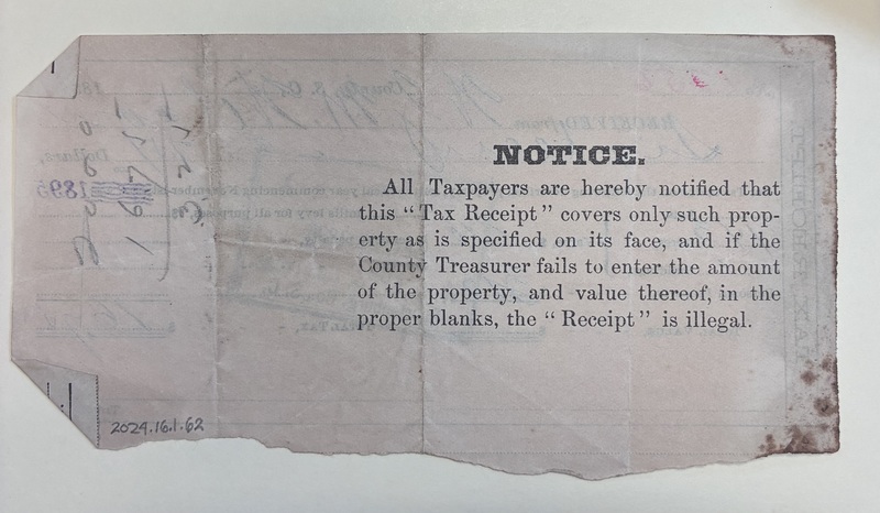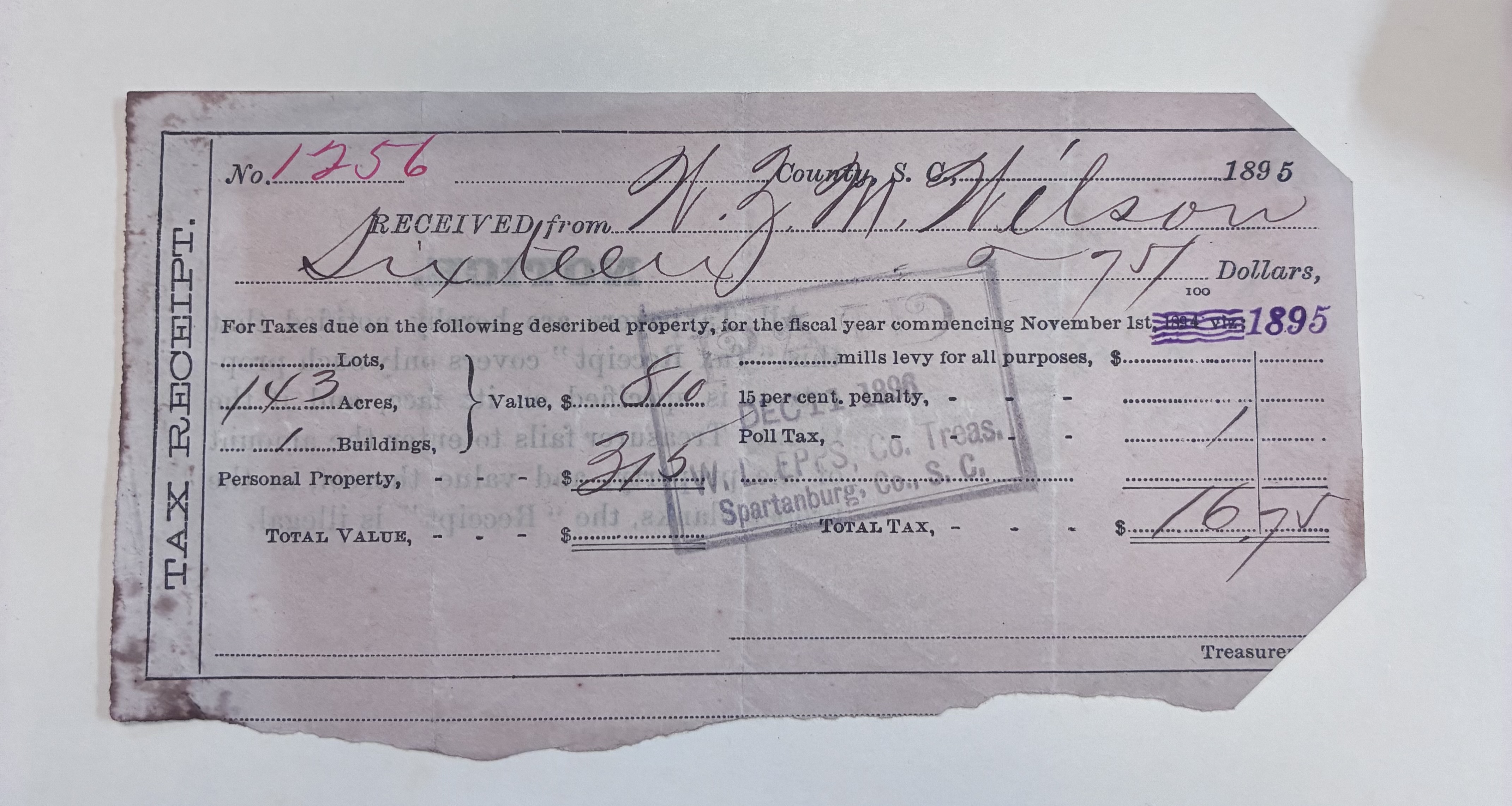 Part of Tax Receipt from W.Z.M Wilson, Spartanburg, S.C., December 11, 1896