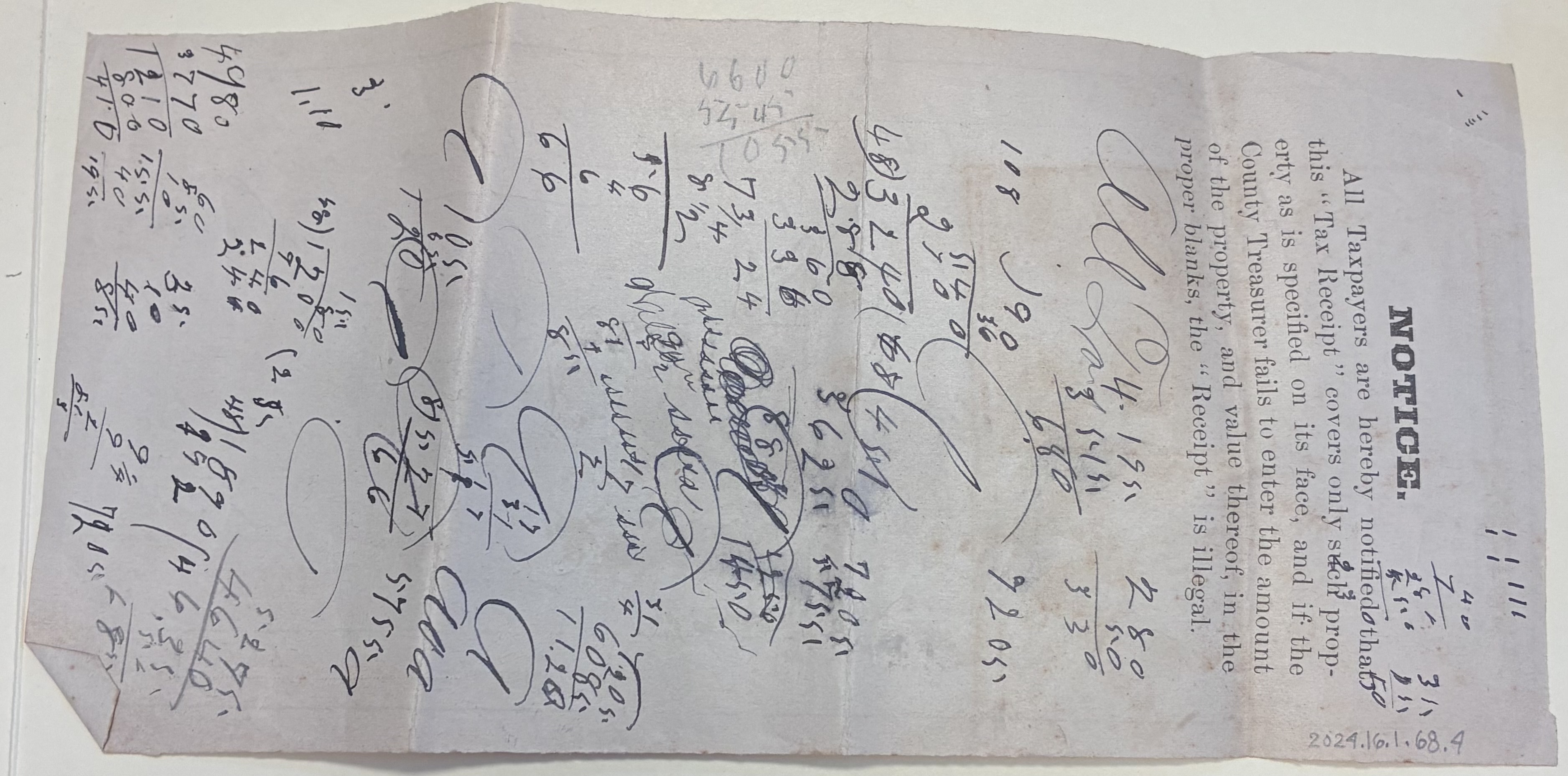 4. Front: Tax receipt from W.Z.M. Wilson