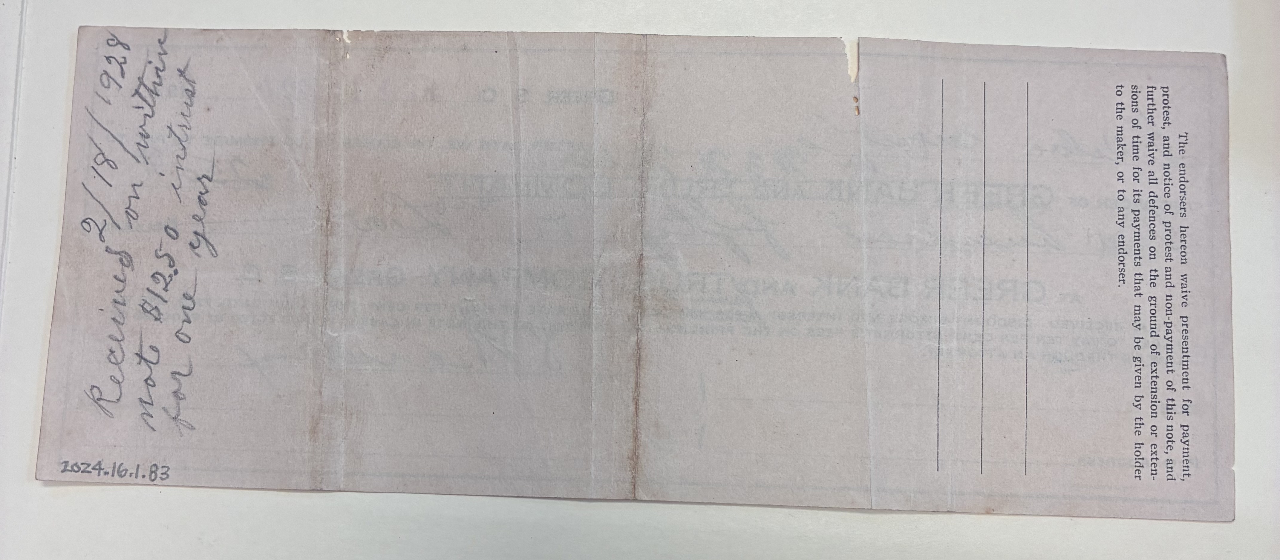 Back: Written $12.50 note intrust, February 18, 1928 - Date