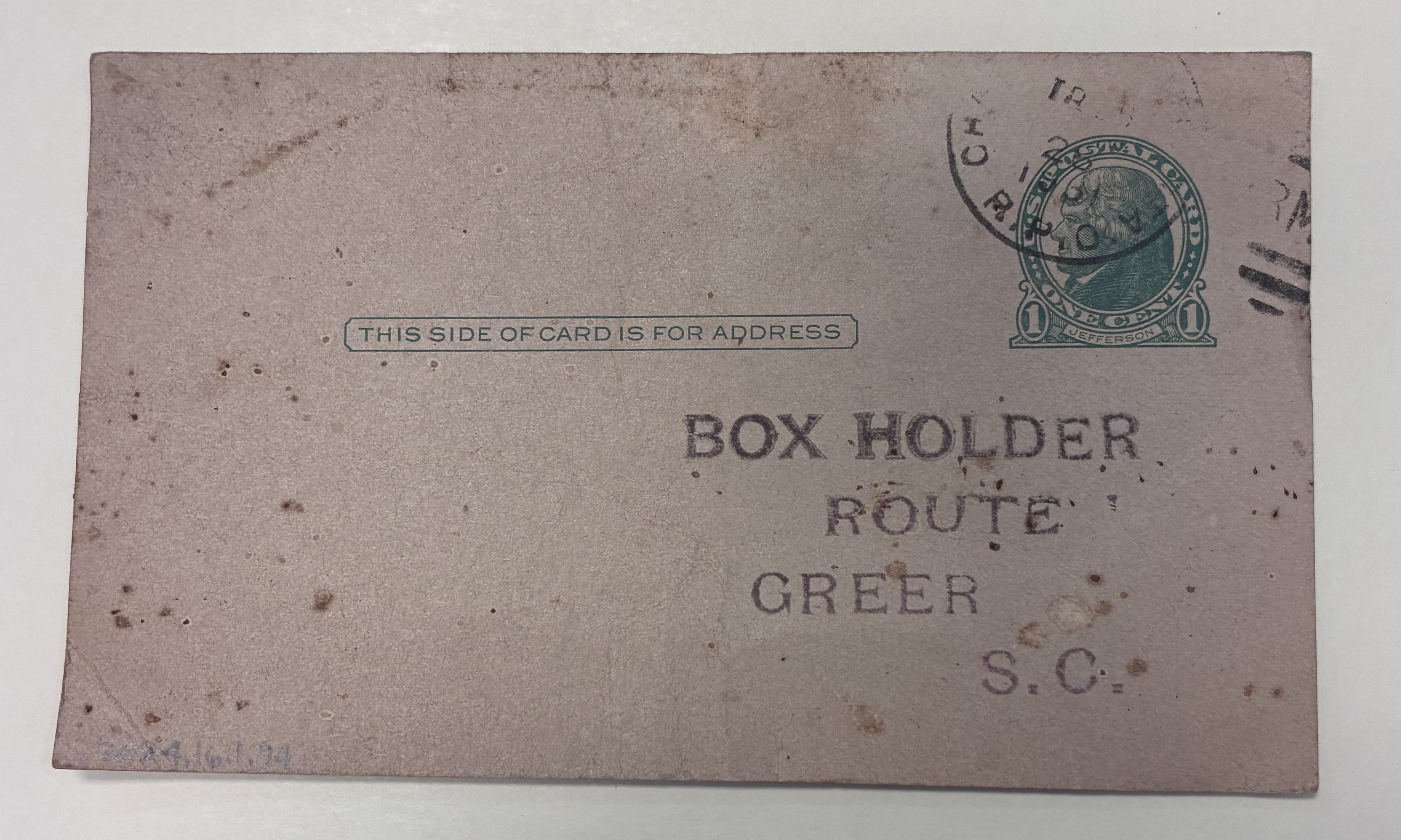 Back: Address Box Holder Route Greer S.C. - Date