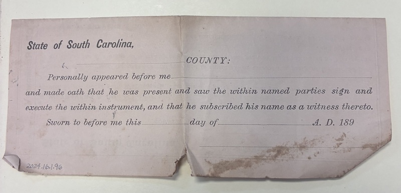 Inside: Currency note, fertilizer advancement agreement W.Z.M Wilson to S Hughes Agent for S.W. Travers & Co., Richmond, VA, Spartanburg, SC, April 10, 1894