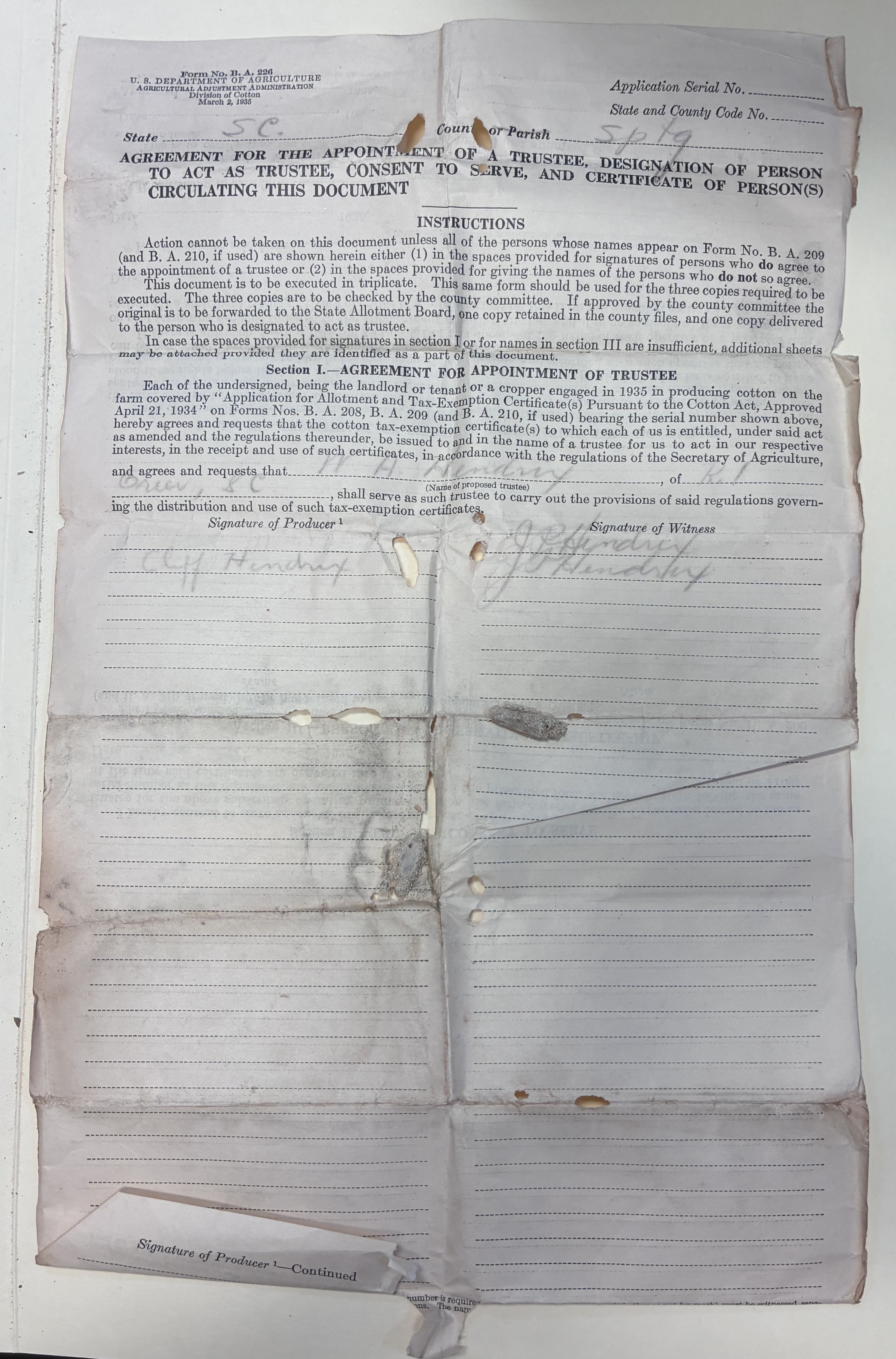 - Agreement for the Appointment of a Trustee W.A. Hendrix, May 20, 1935