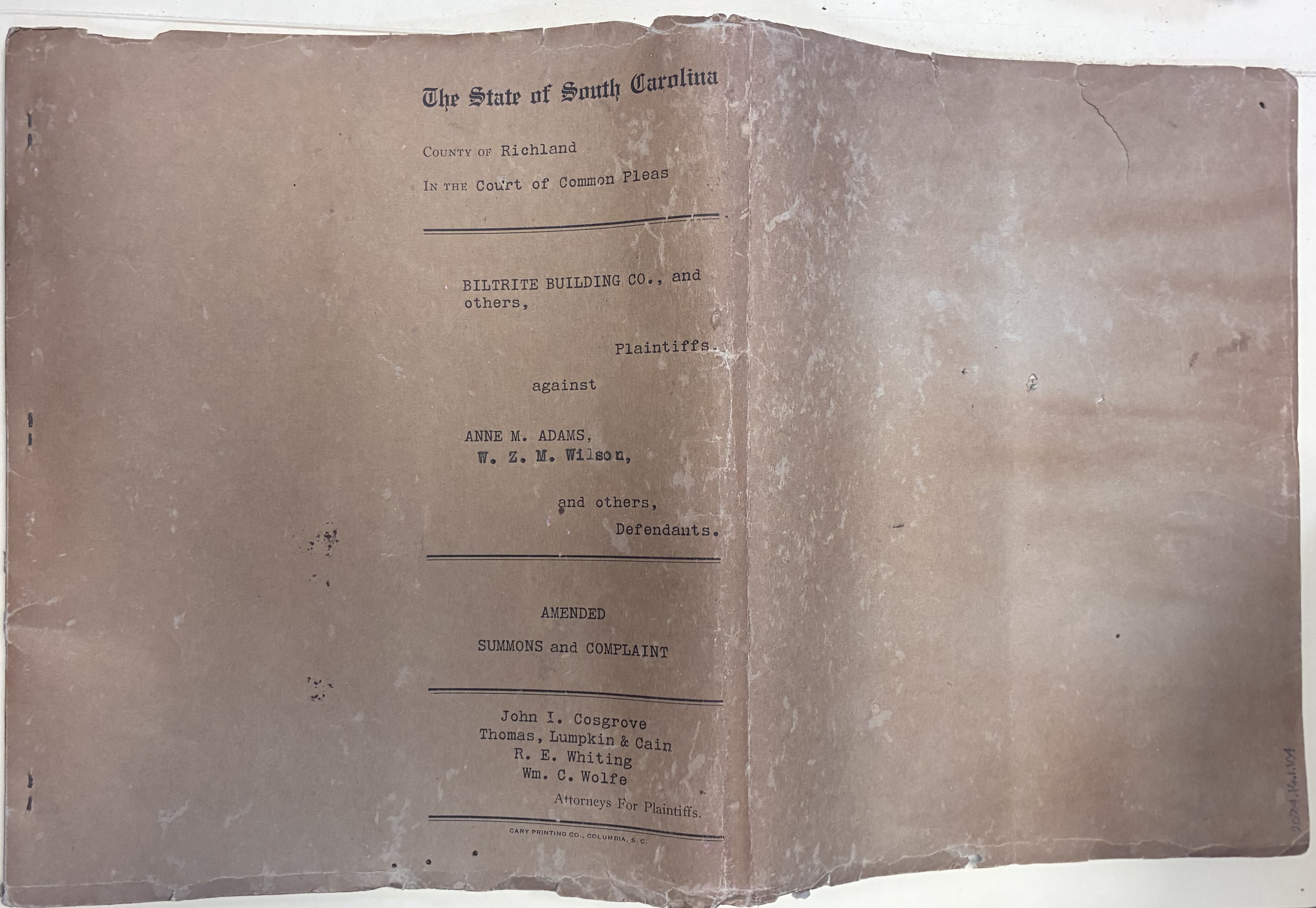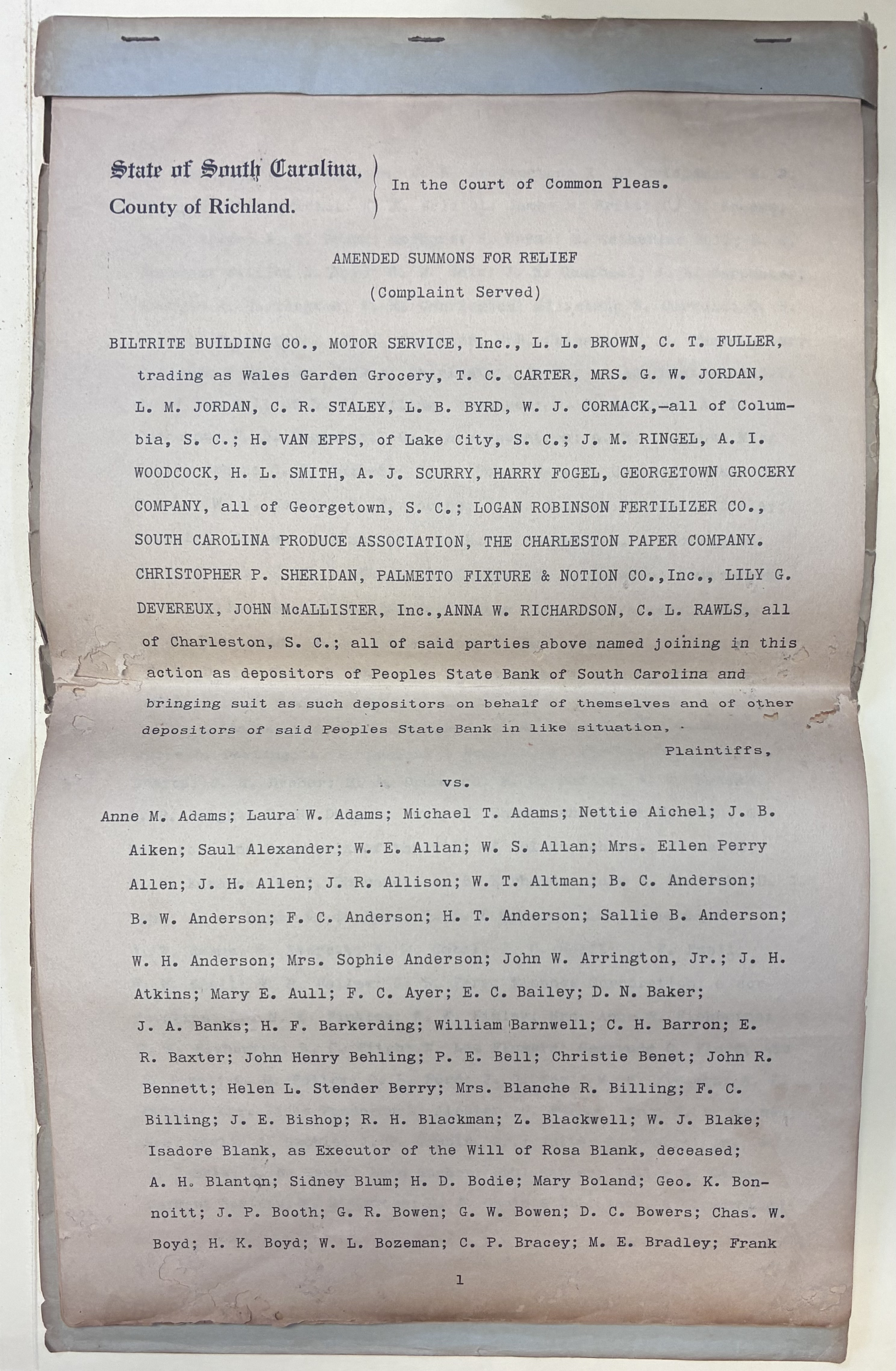 36-page amended summons for relief Columbia, SC, March 3, 1933