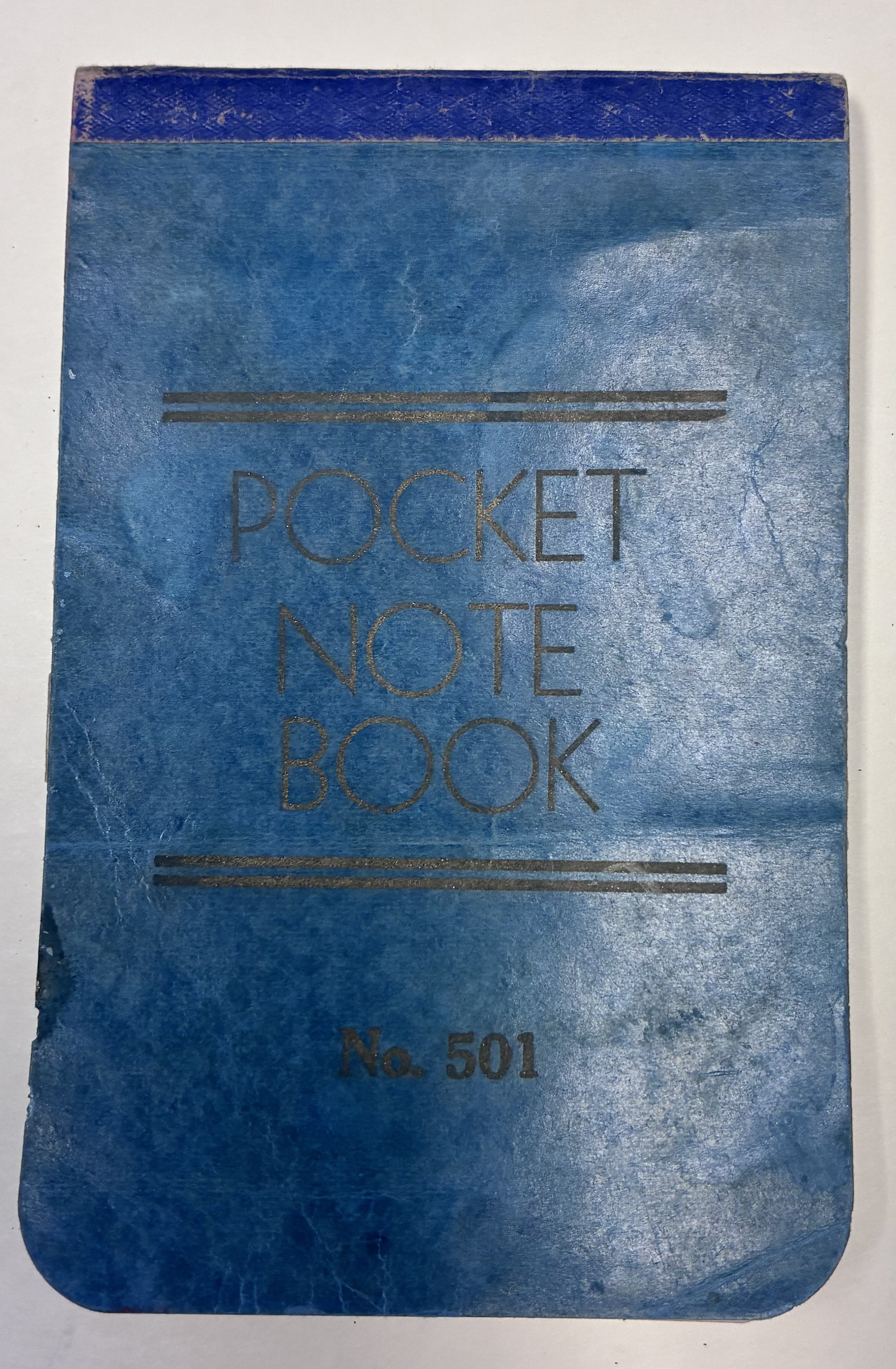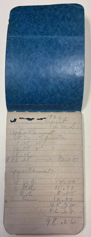 - Blue pocket notebook filled with payment and purchase records, 1934