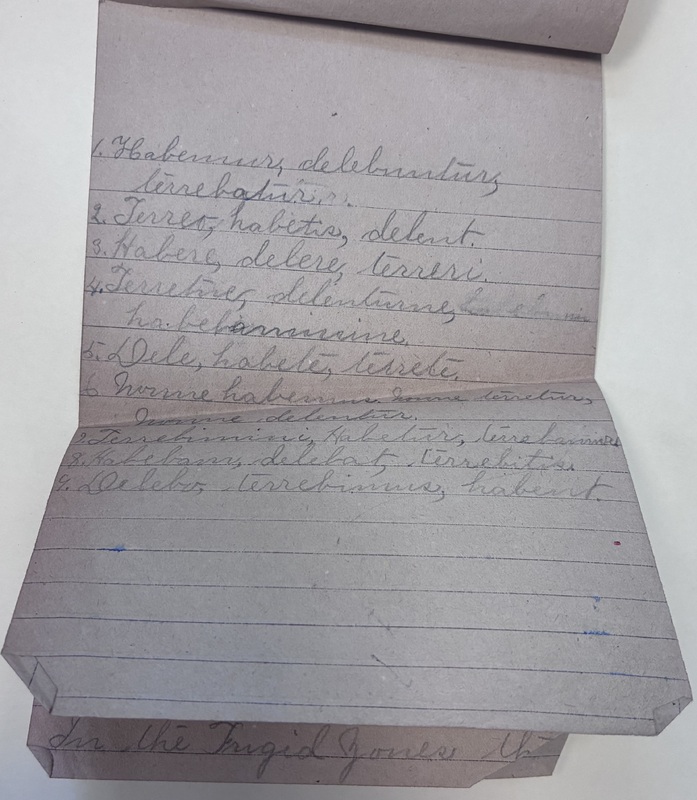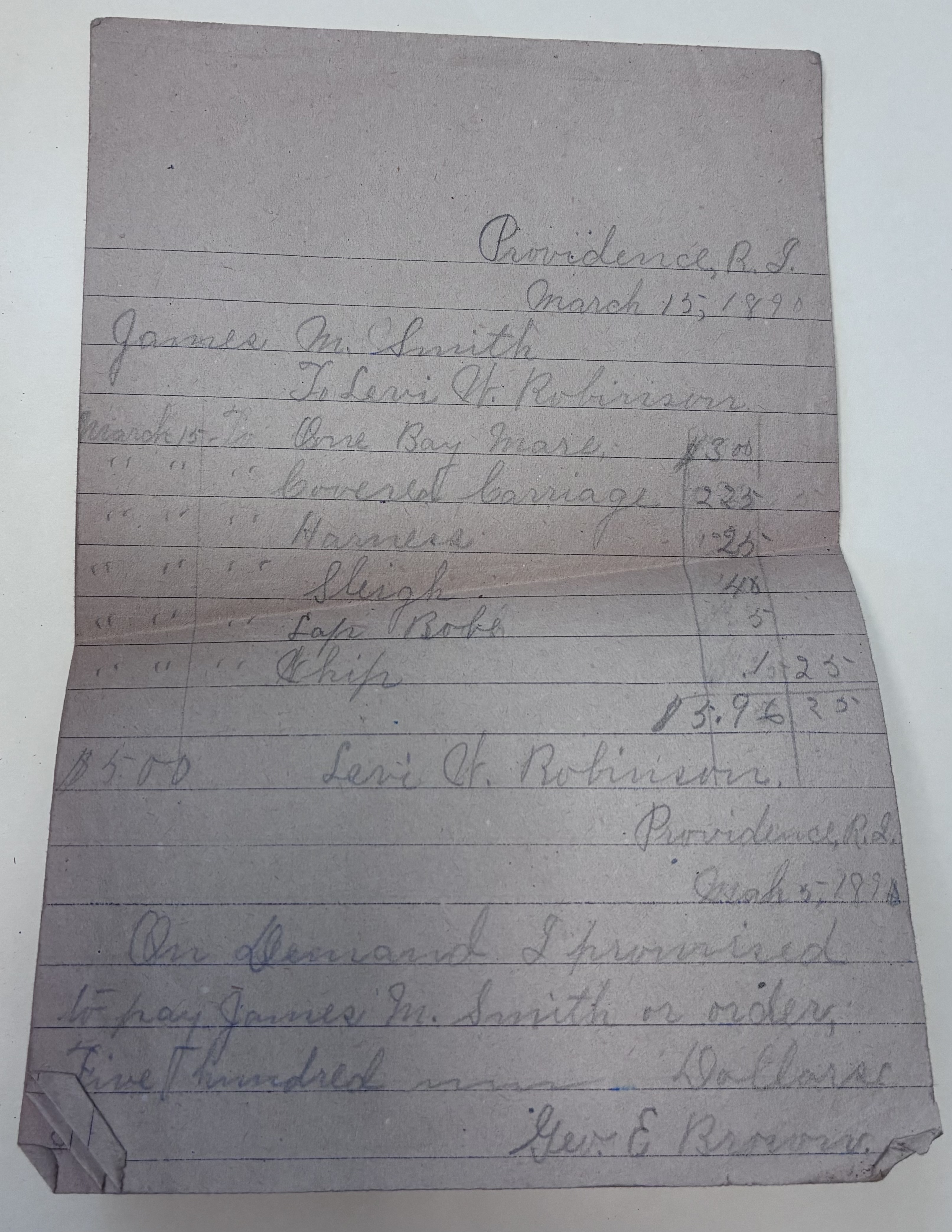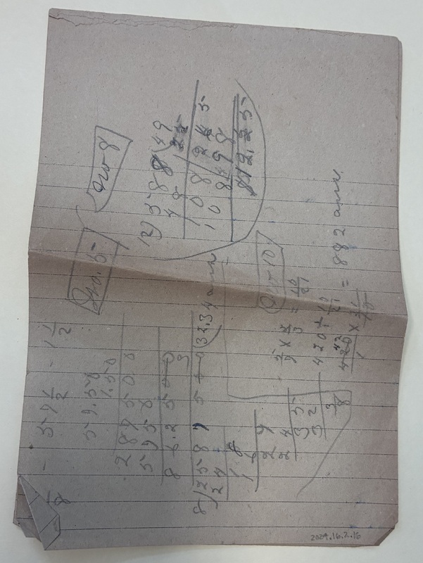- Miscellaneous set of papers that includes a transaction, payment promise, lists, math equations, and a short story