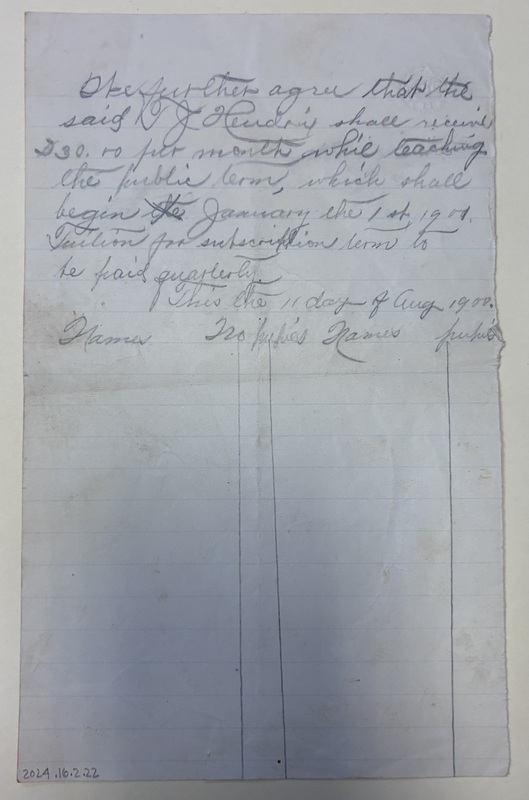 Part of J.T. Hendrix Teaching Agreement at Liberty Hill School, 1900