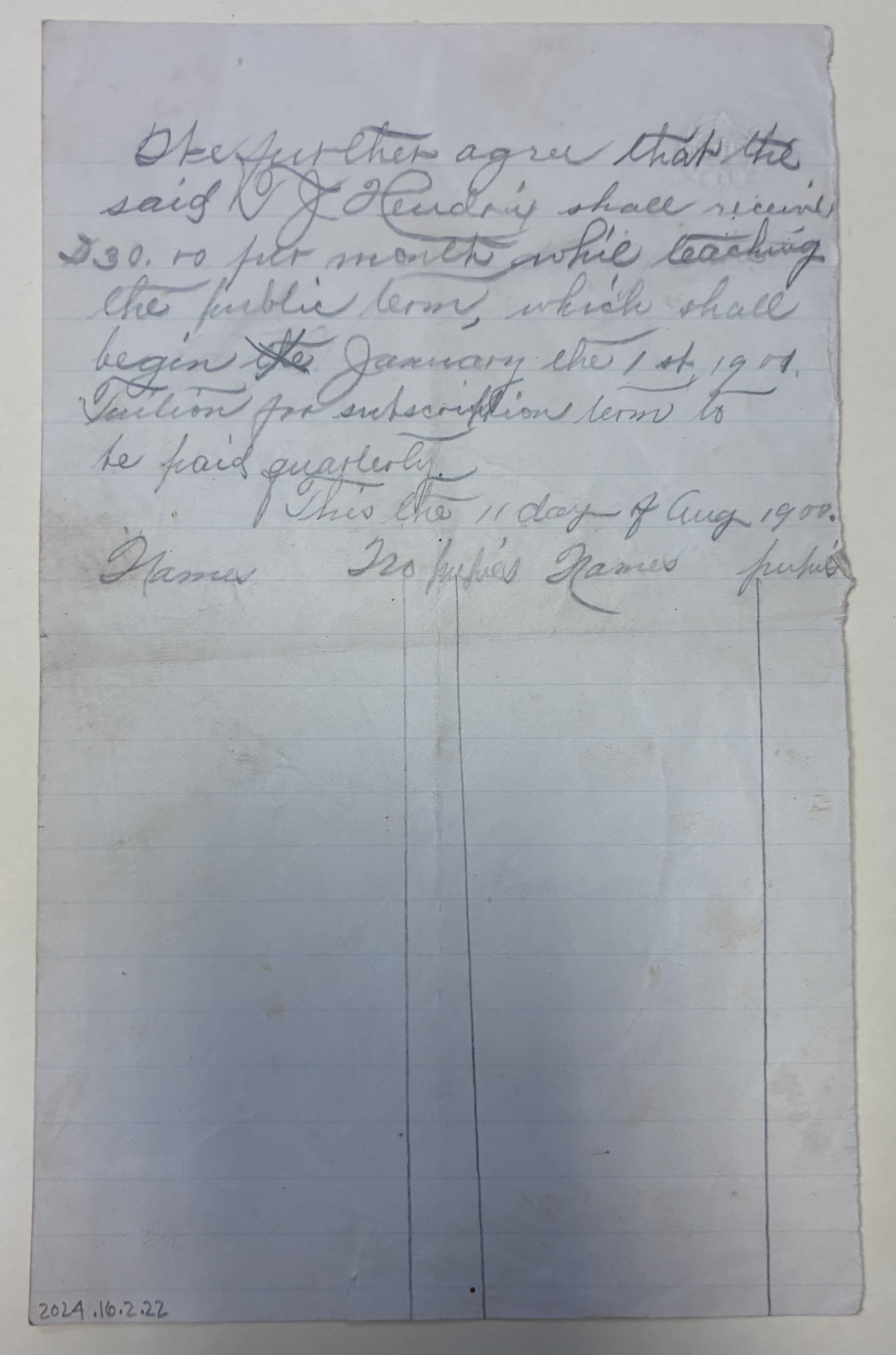 - J.T. Hendrix Teaching Agreement at Liberty Hill School, 1900