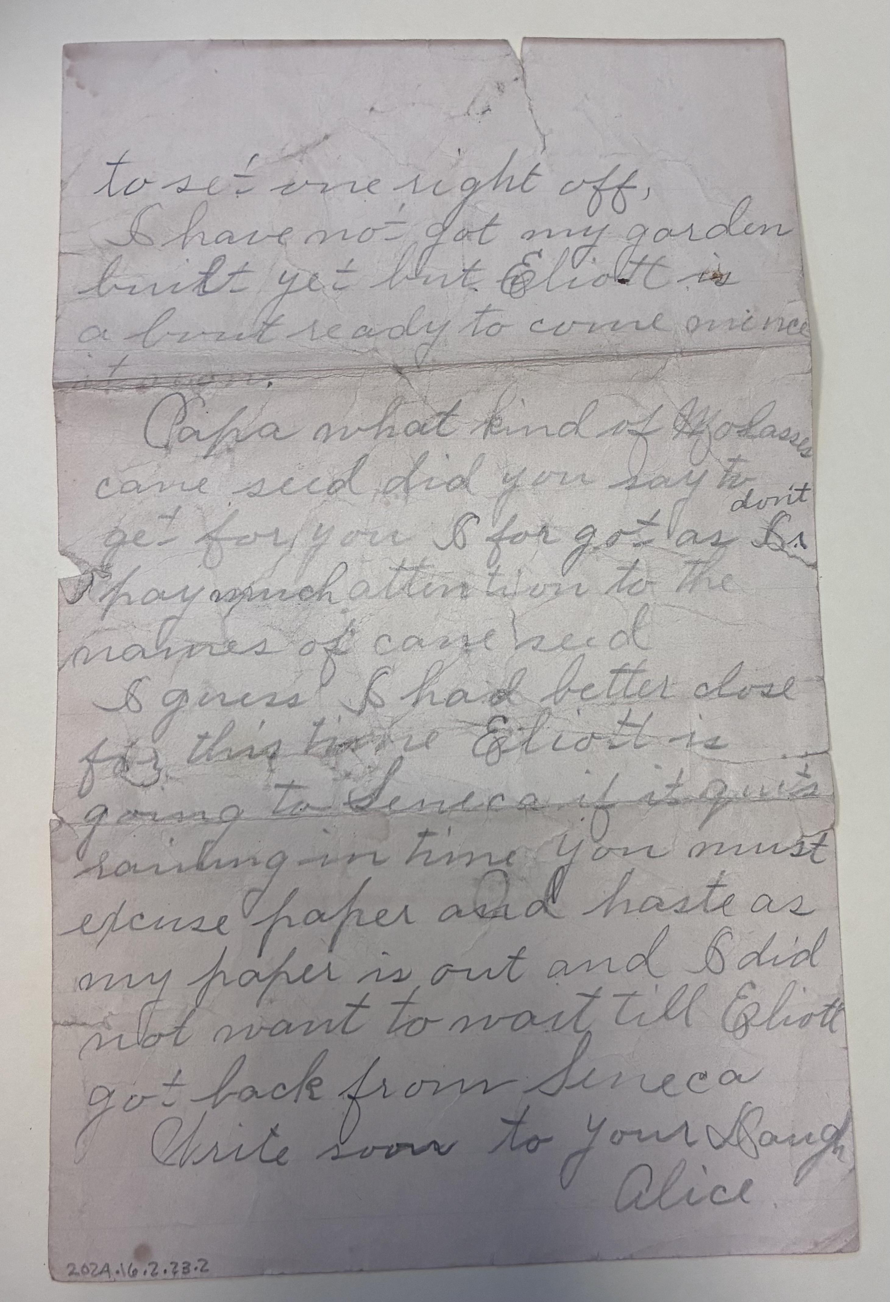 Write soon to your Daugh, Alice