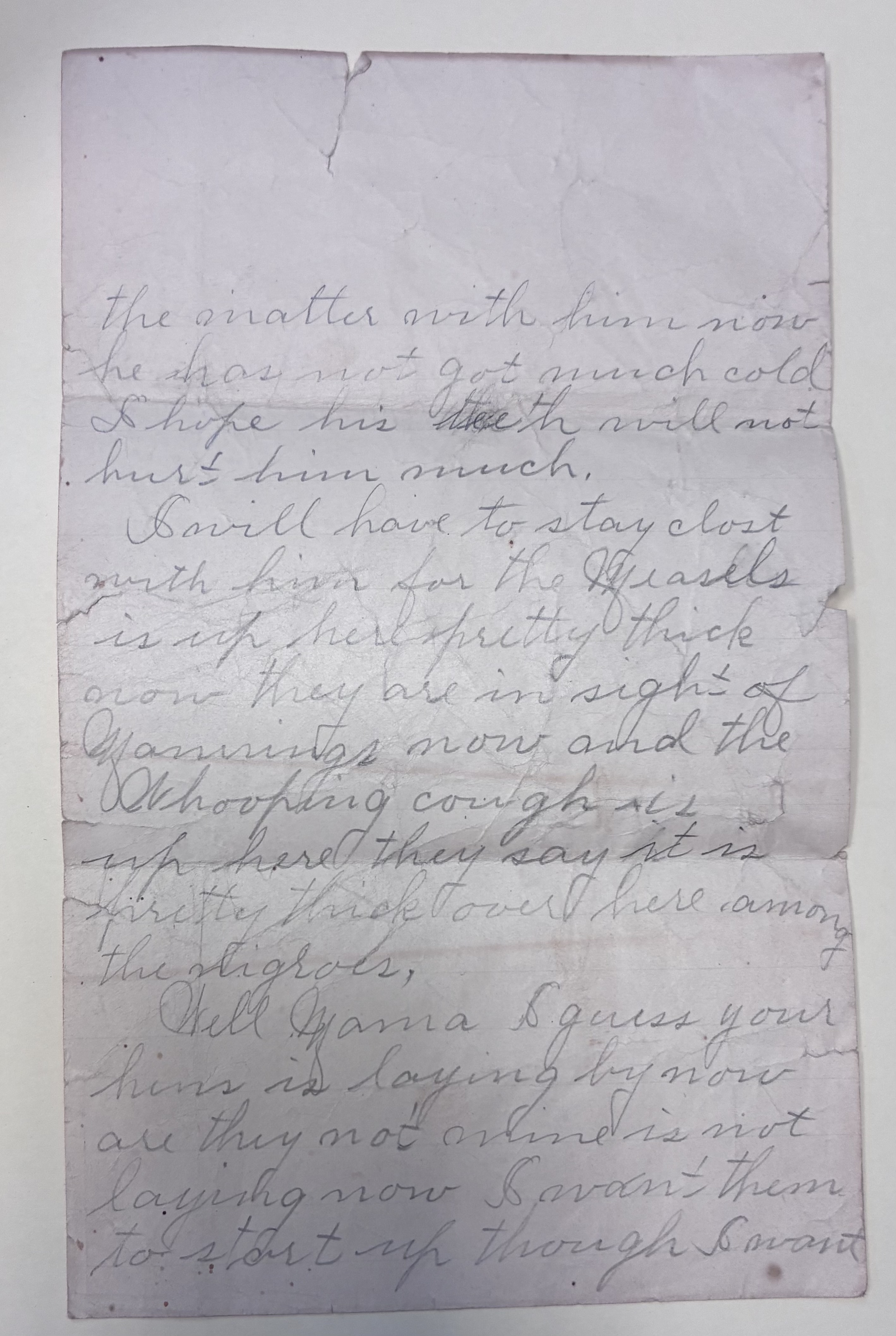 I will have to stay close with him for the Measels is uo here pretty thick now they are in sight of Mannings now and the Whooping cough is up here they say it is pretty thick over here among the highoes,