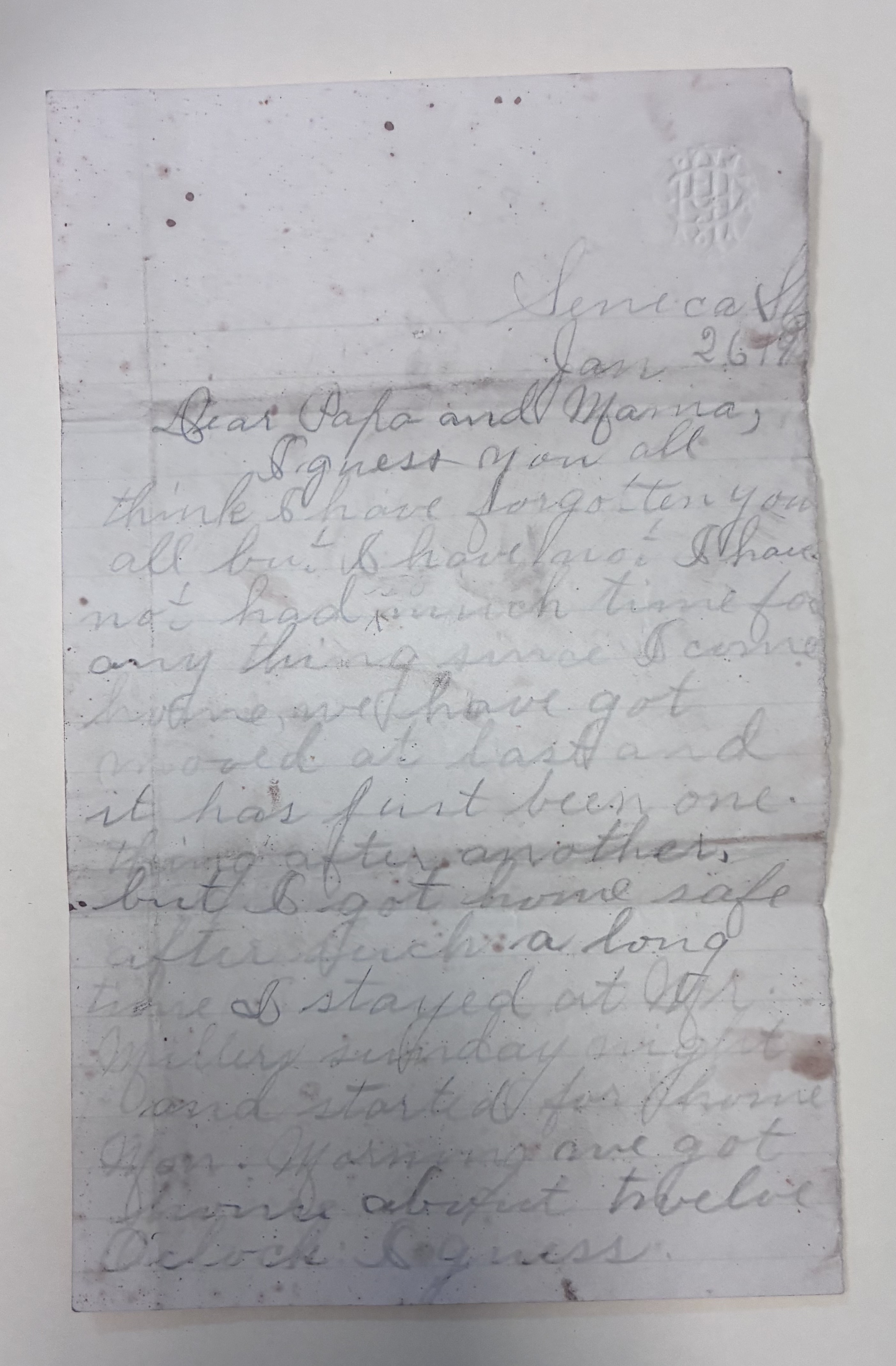 I guess I had better close for this time Eliott is going to Seneca if it quits something in time you must excuse paper and haste as my paper is out and I did not want to wait till Eliott got back from Seneca