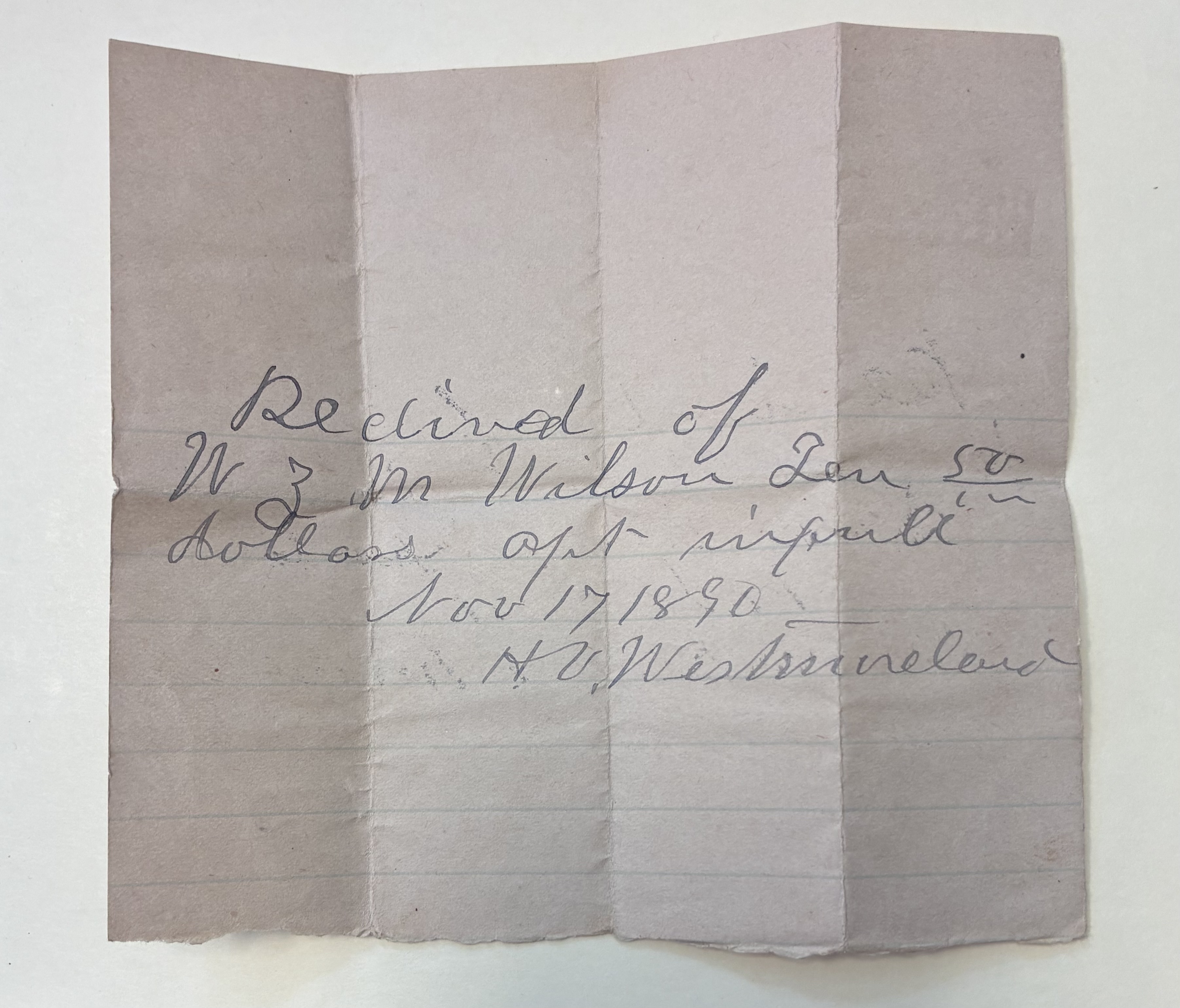 - W.Z.M. Wilson Receipt, November 17, 1890