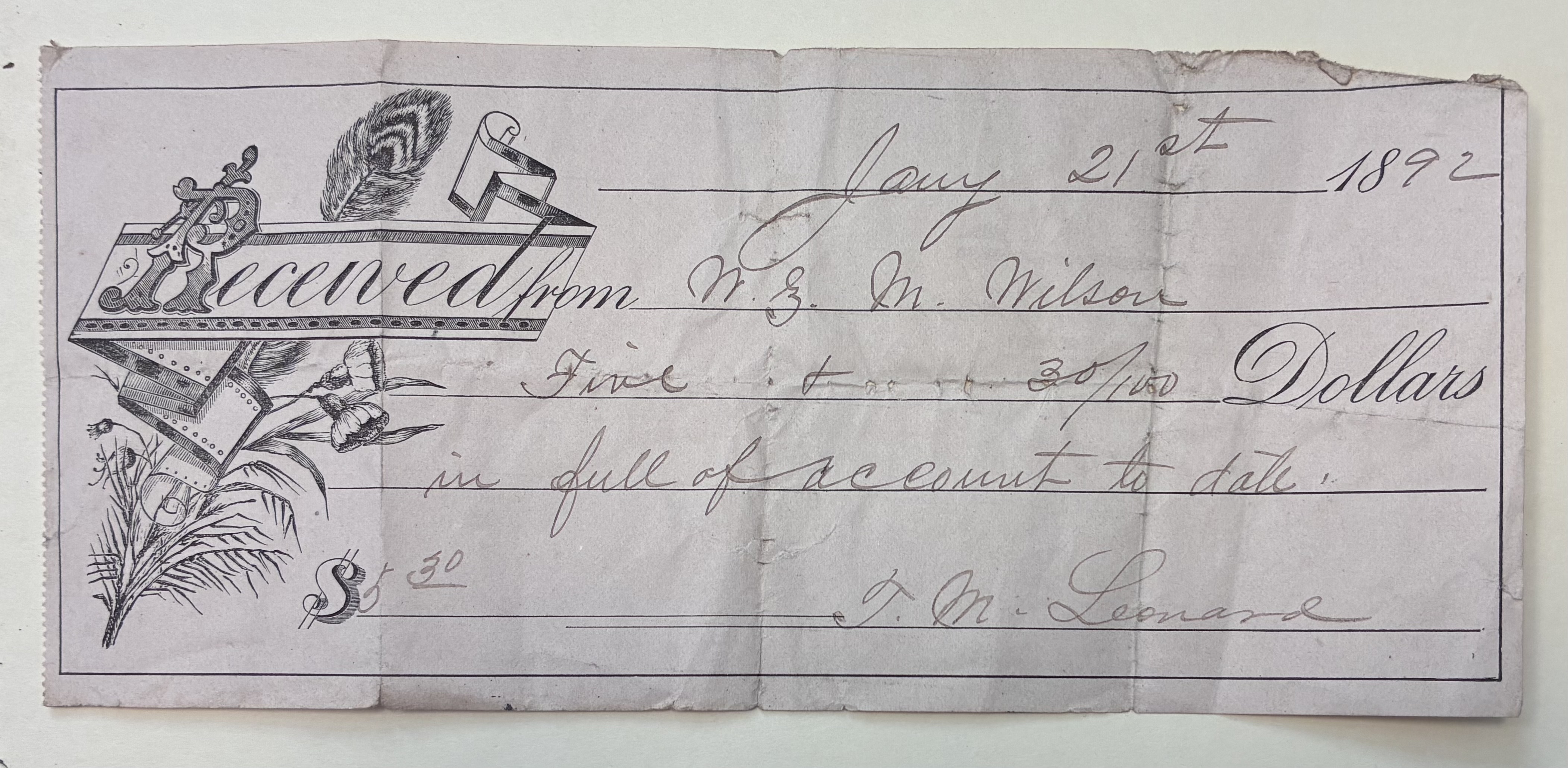 - T.M. Leonard received $5.30 from W.Z.M. Wilson