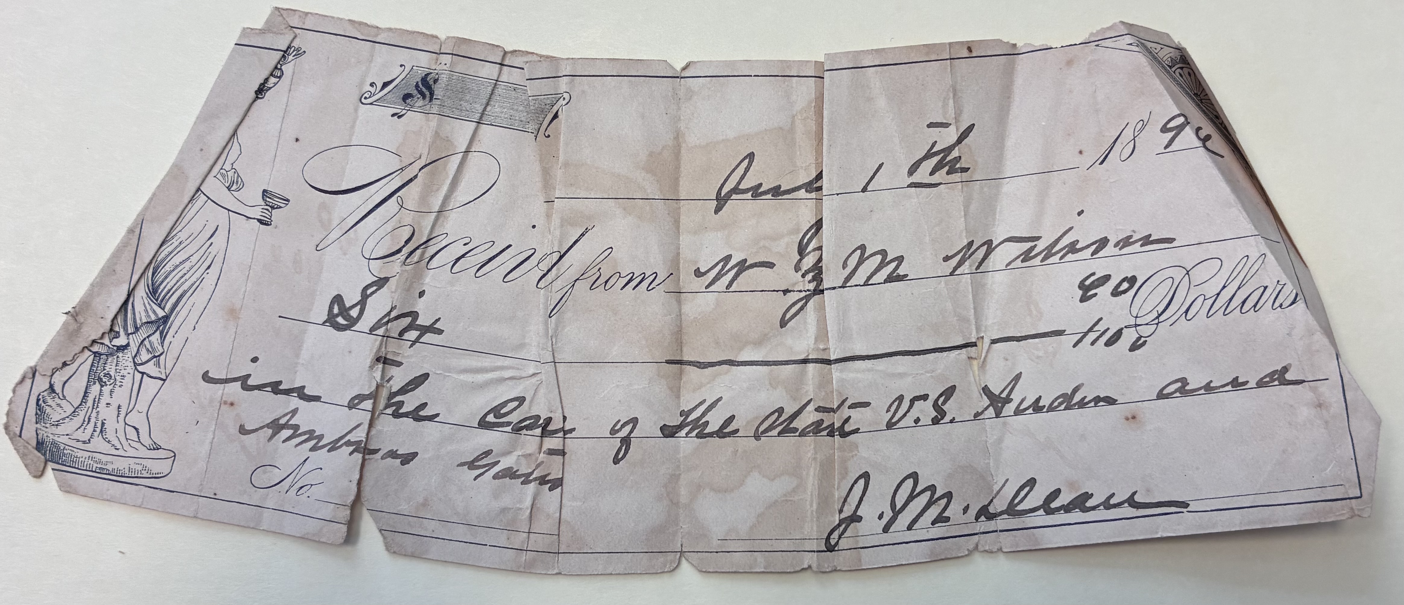 J.M. Lleau Receipt, July 1, 1896