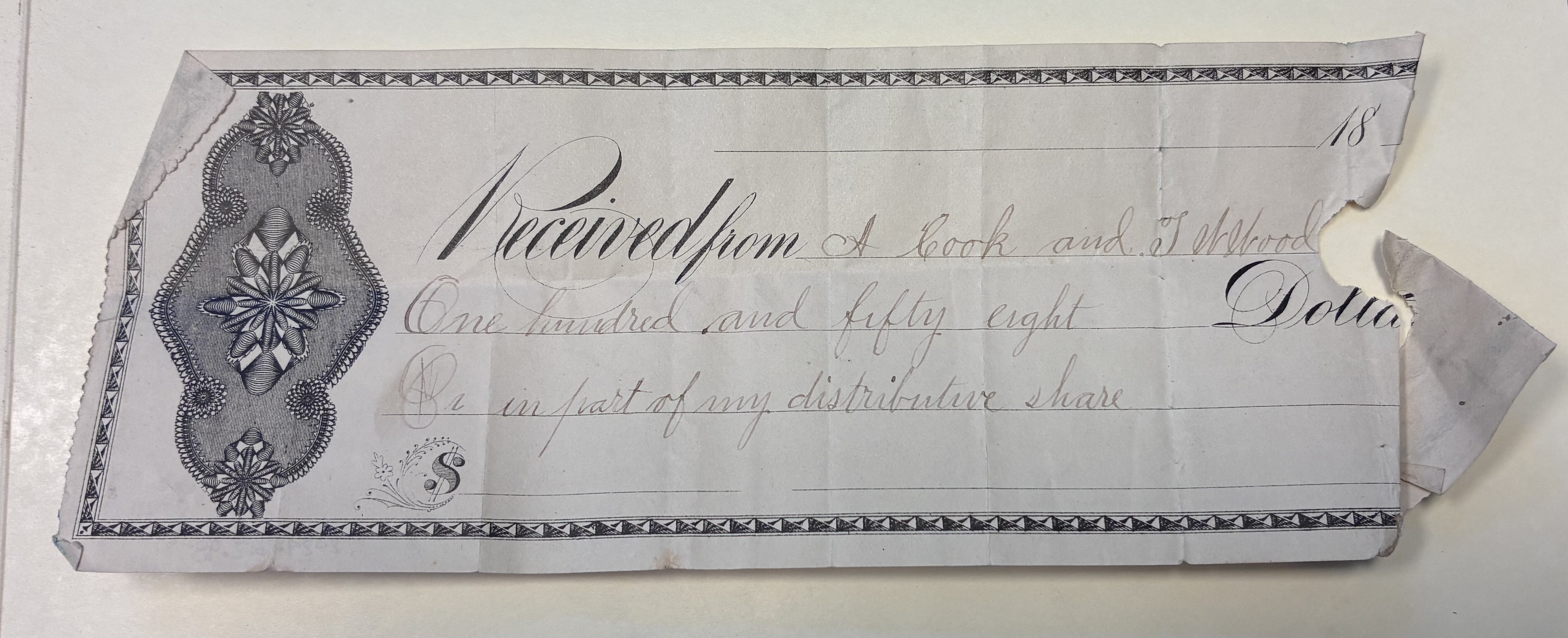 Part of A. Cook and T.A. Wood Receipt