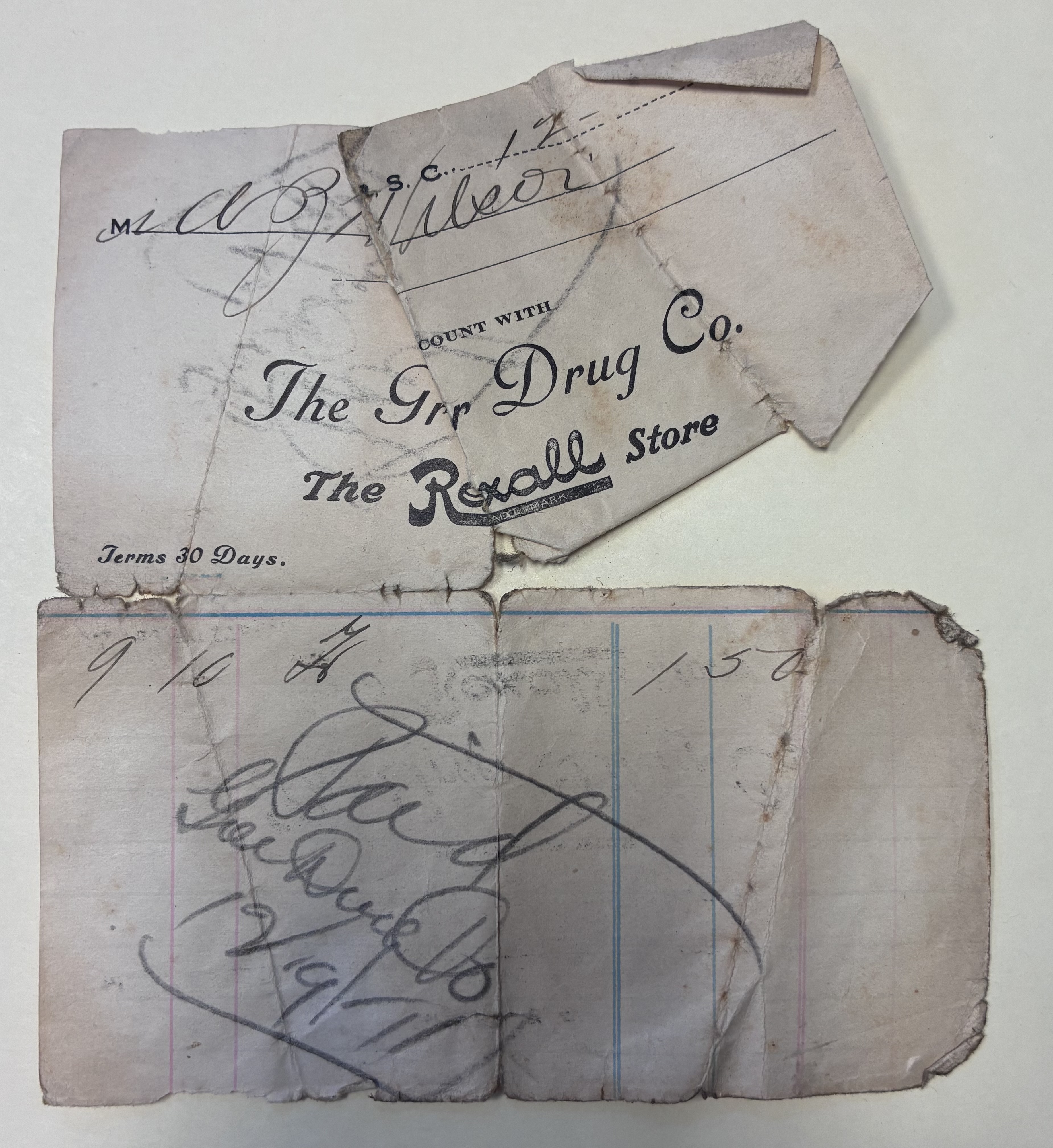 - The Greer Drug Co and The Rexall Store Receipt, Greer, S.C., December 1911