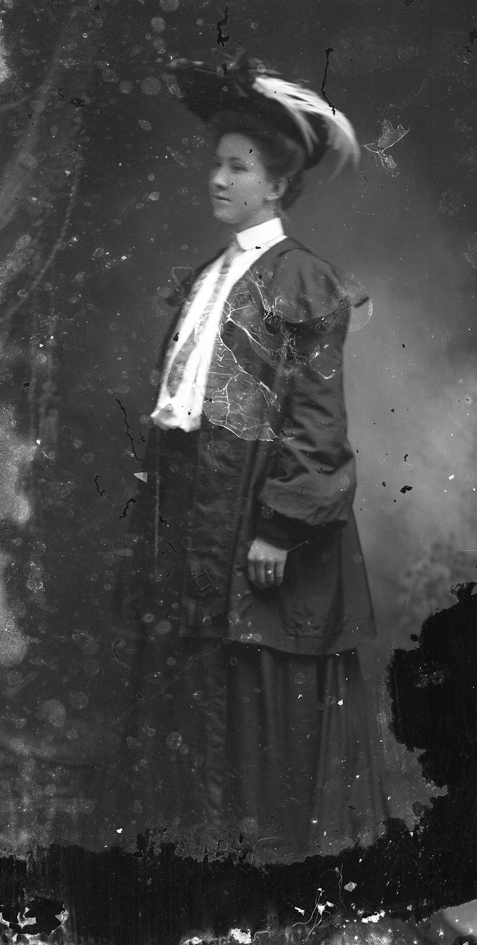 Part of Drace Glass Plate Negative: Portrait of an Unknown Woman, possibly a pregnant Fannie Drace