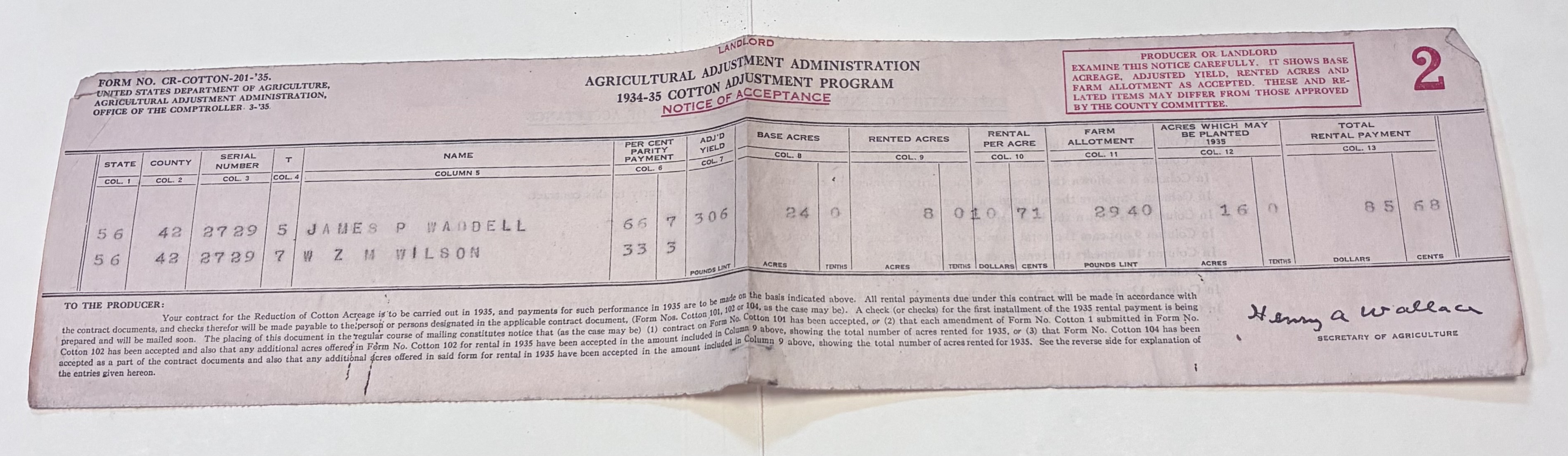 Part of Agricultural Adjustment Administration 1934-35 Cotton Adjustment Program