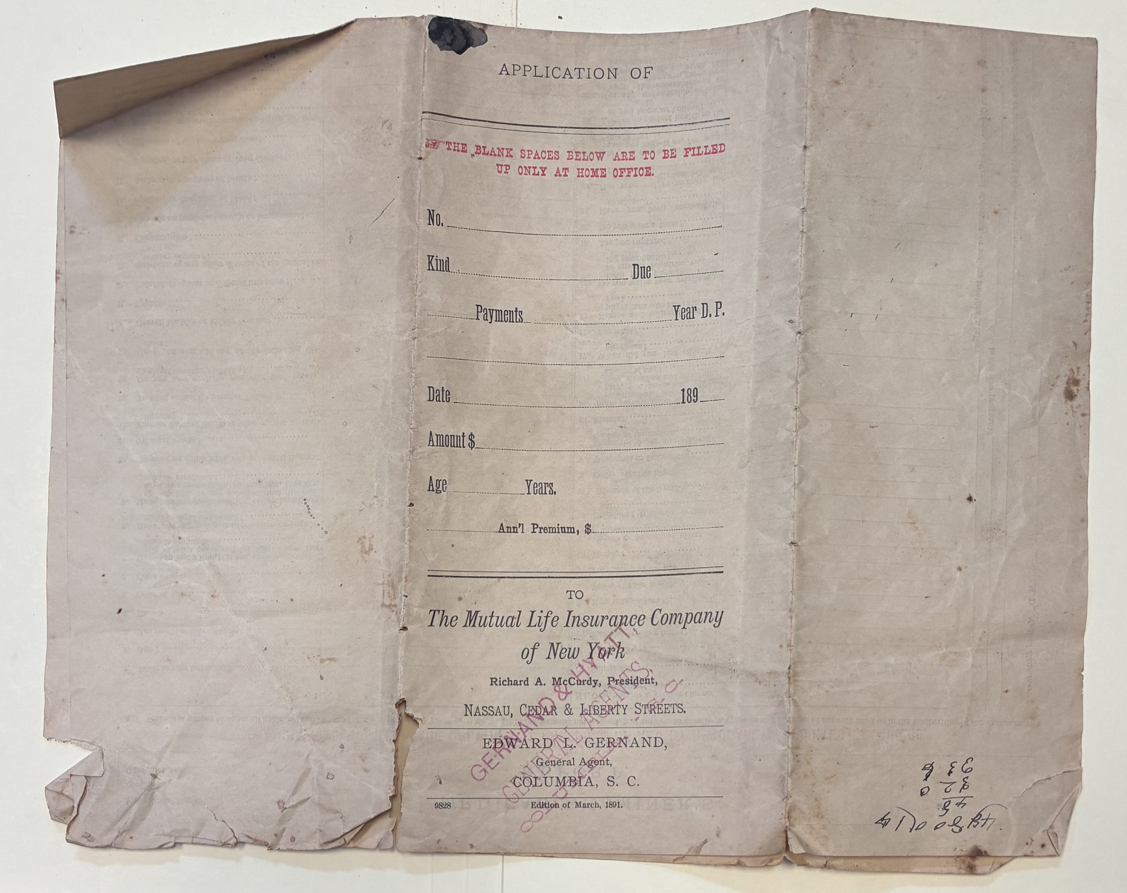 - Mutual Life Insurance Company of New York Application