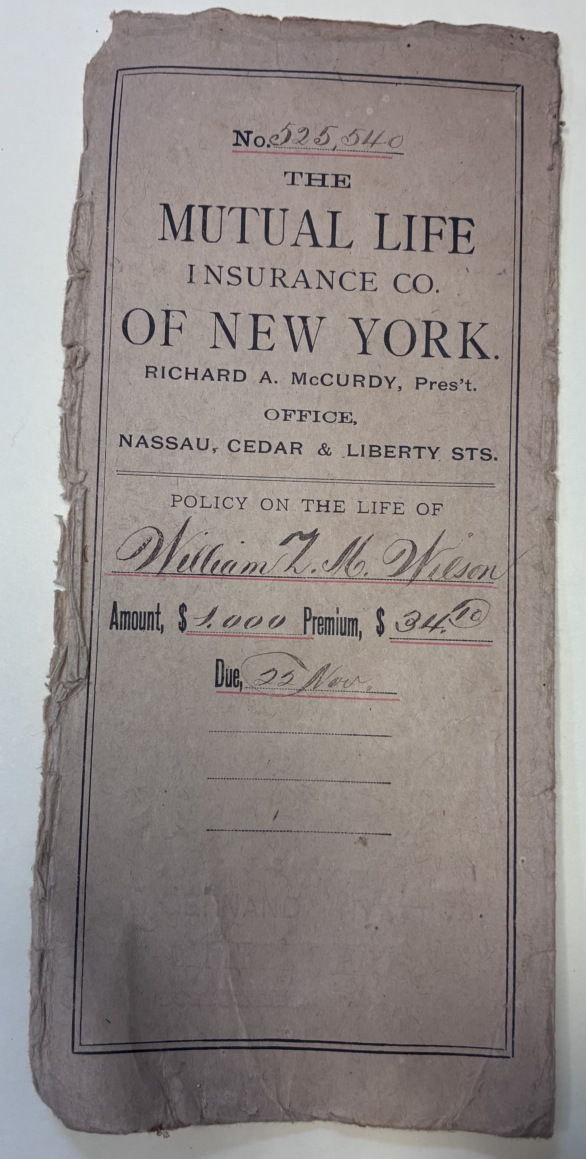 2: Envelope regarding William Z.M. Wilson 's Policy - Date