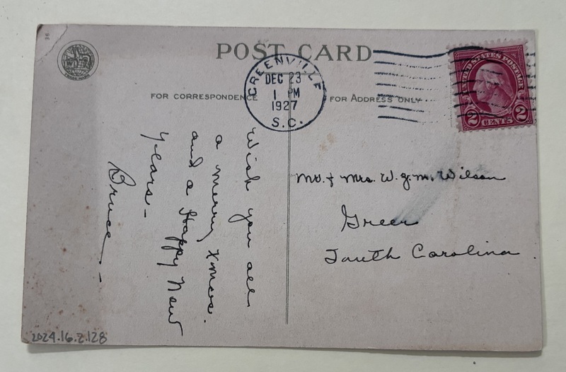 - Christmas Postcard, Greenville, S.C., December 23, 1927