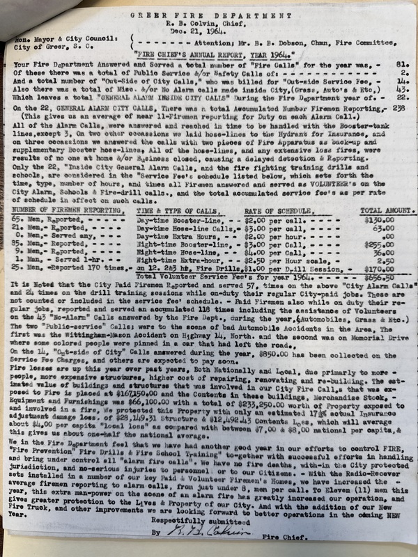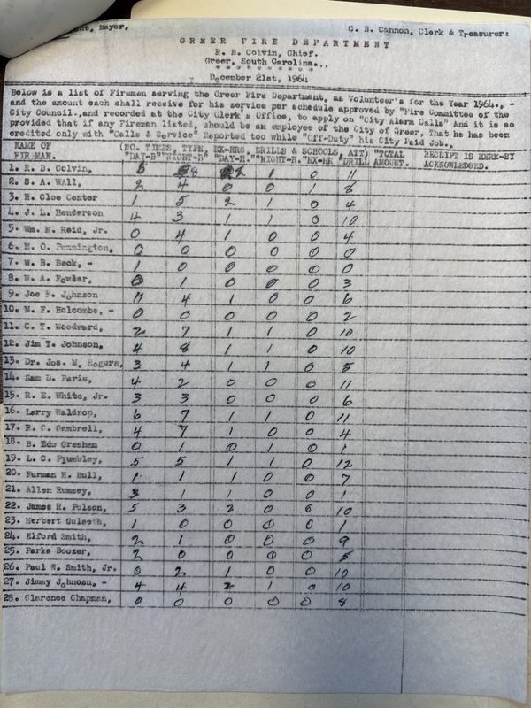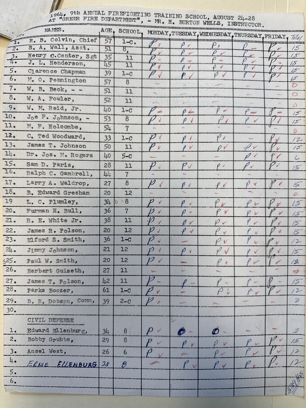 Part of 1964 Greer City Firemen
