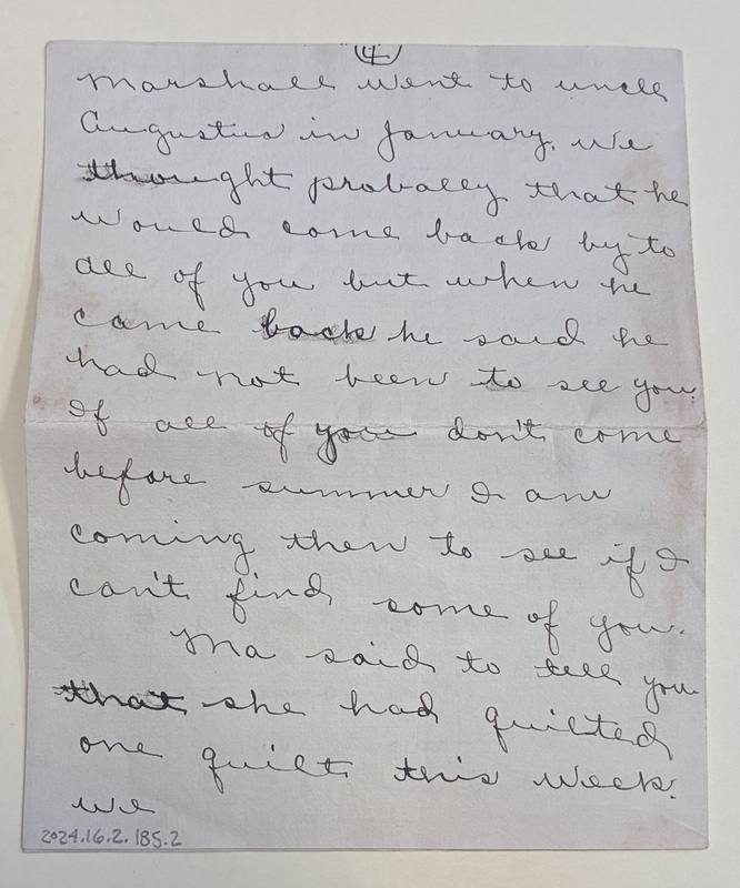 Marshall went to uncle Augustus in January. We thought probably that he would come back by to all of you but when he came back he said he had not been to see you. If all of you don't come before summer I am coming then to see if I can't find some of you.