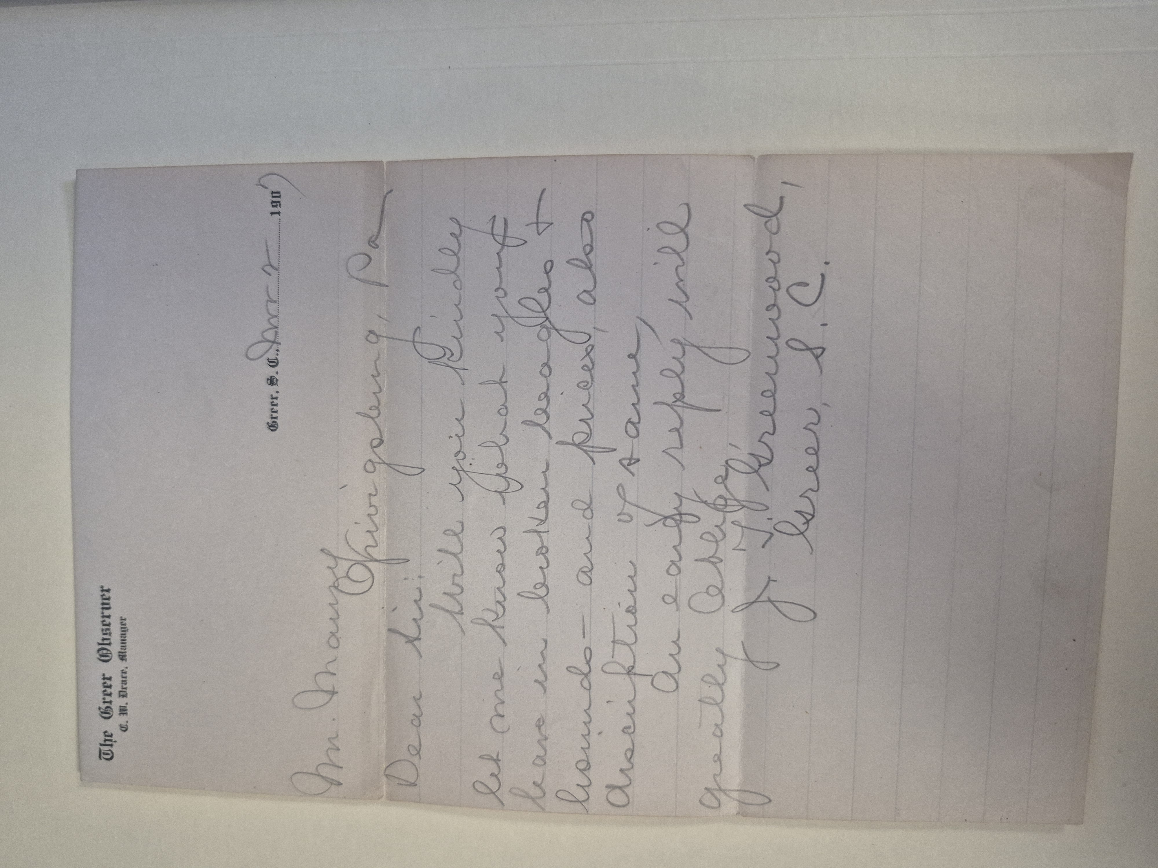 Greer, S.C. March 2, 1903 (?)