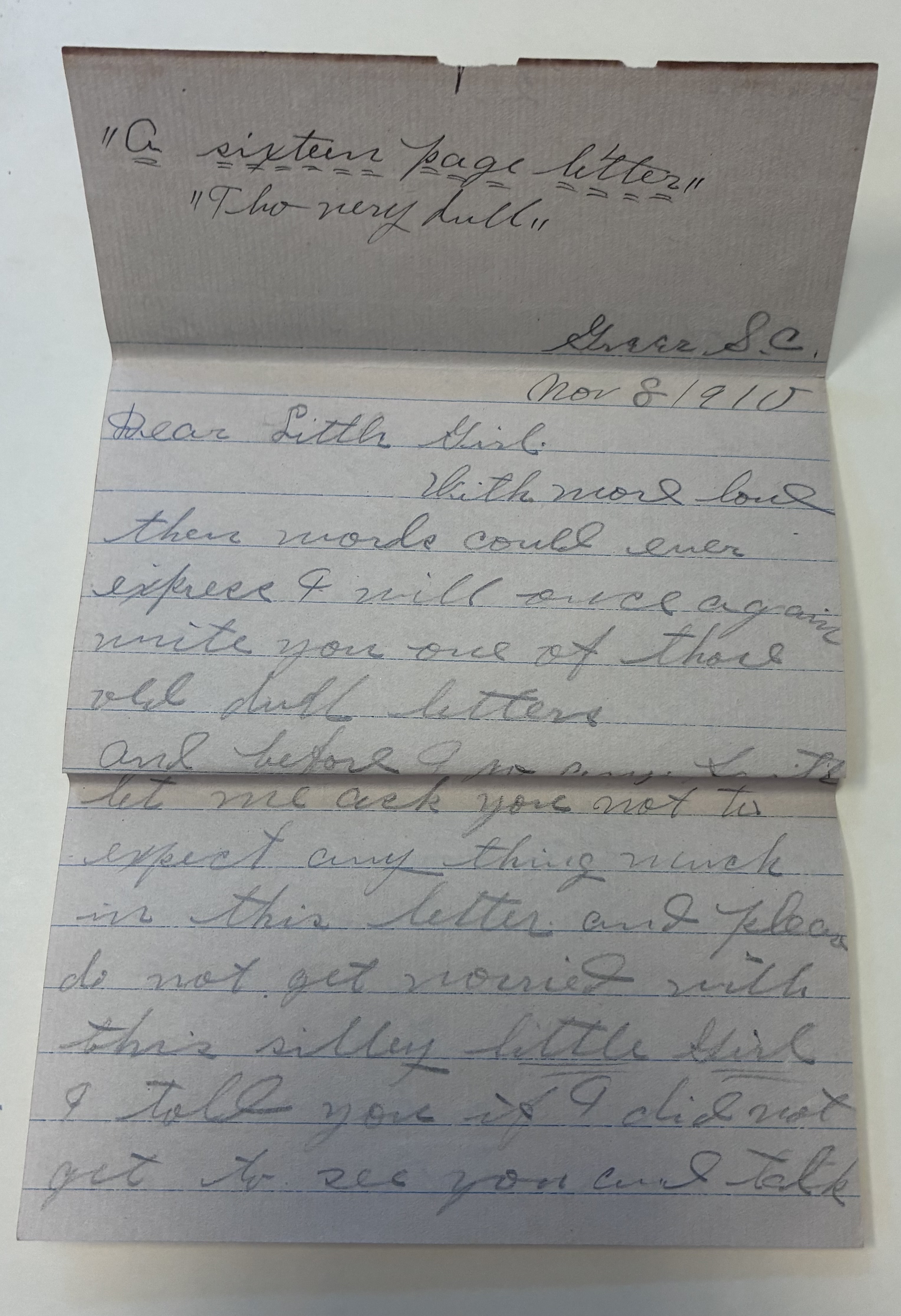 Ernestine Wilson Envelope and Letter, Greer, S.C., November 8, 1910