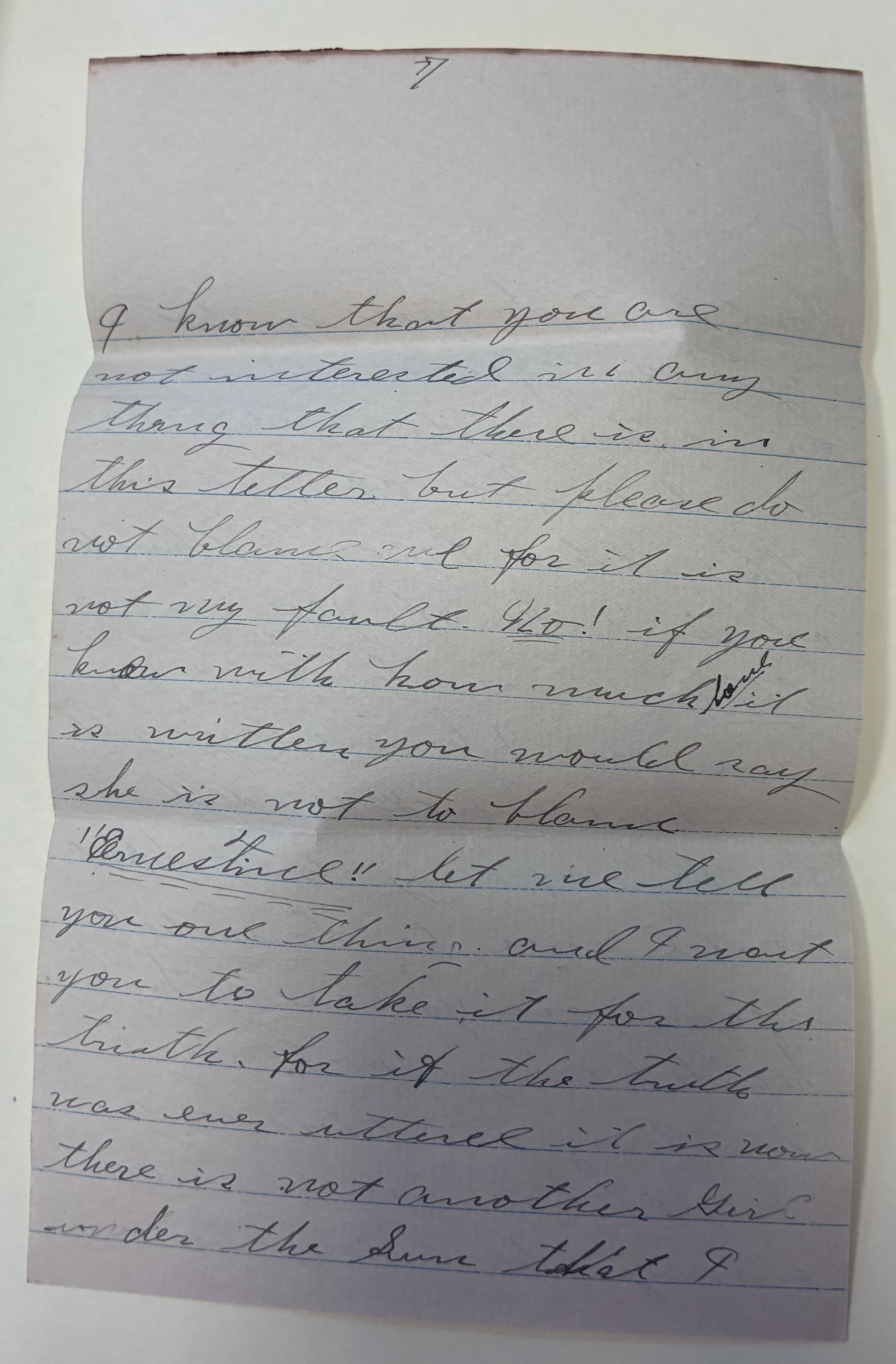 I know that you are not interested in any thing that there is in this letter but please do not blame me for it is mot my fault Ho! if you know with how much love it is written you would say she is not to blame