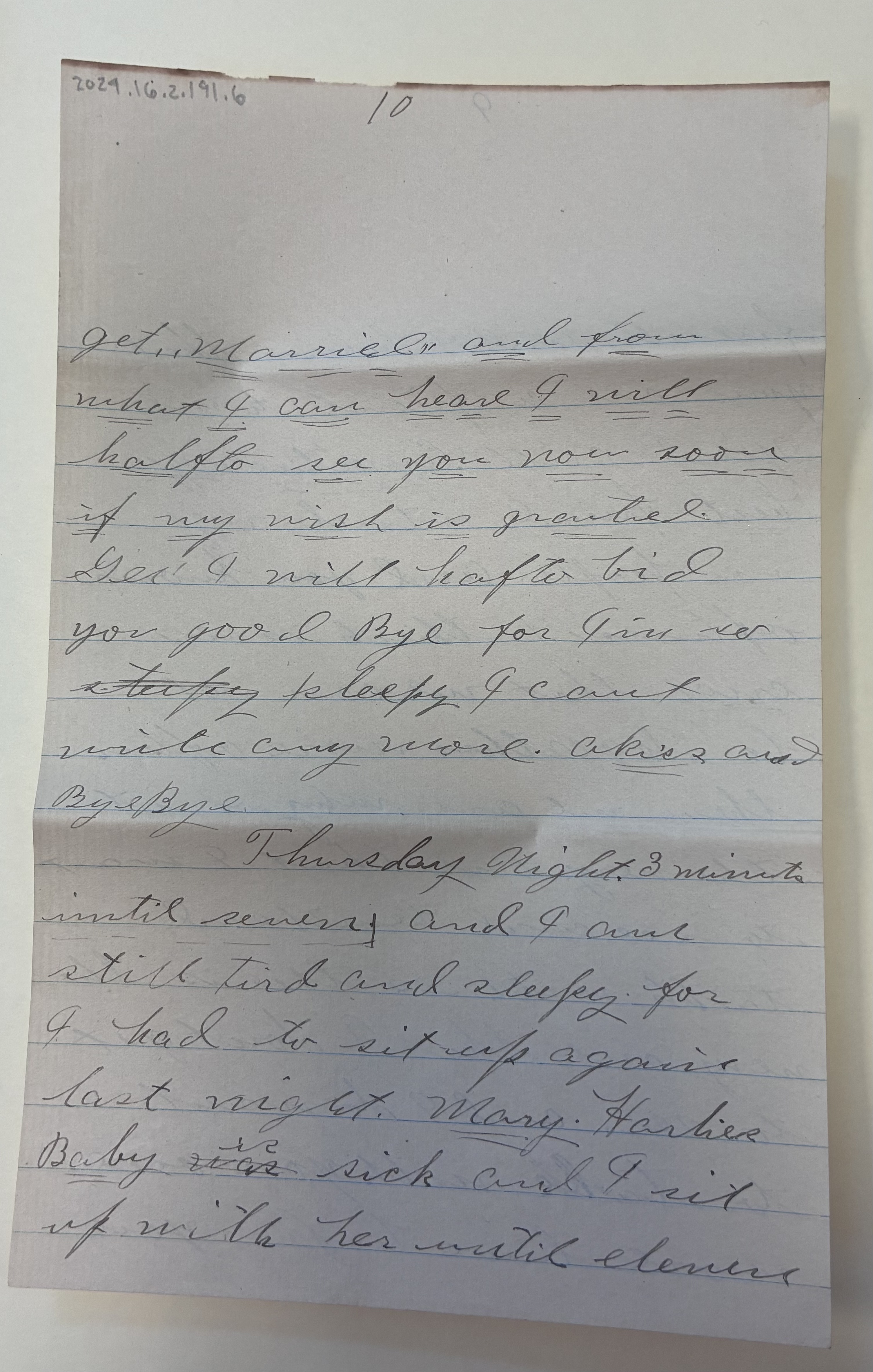 get ,,married,, and from what I can heare I will half to see now soon if my wish is granted Gee! I will hafto bid you good Bye for Ive [illegible] sleepy I cant write any more a kiss and Bye Bye