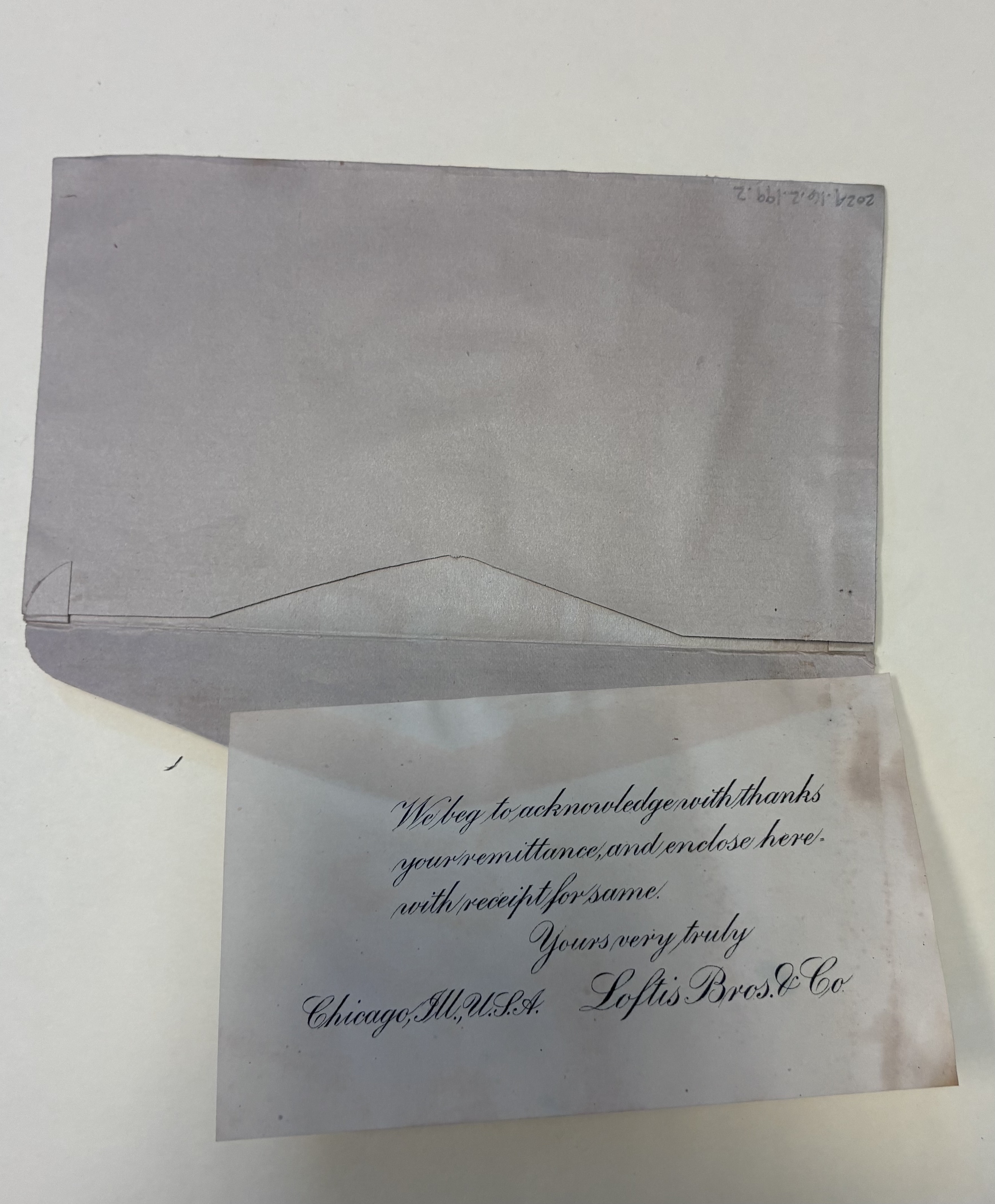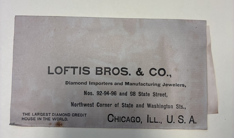 199.2: Envelope and Note from Loftis Bros. & Co., Diamond Importers and Manufacturing Jewelers