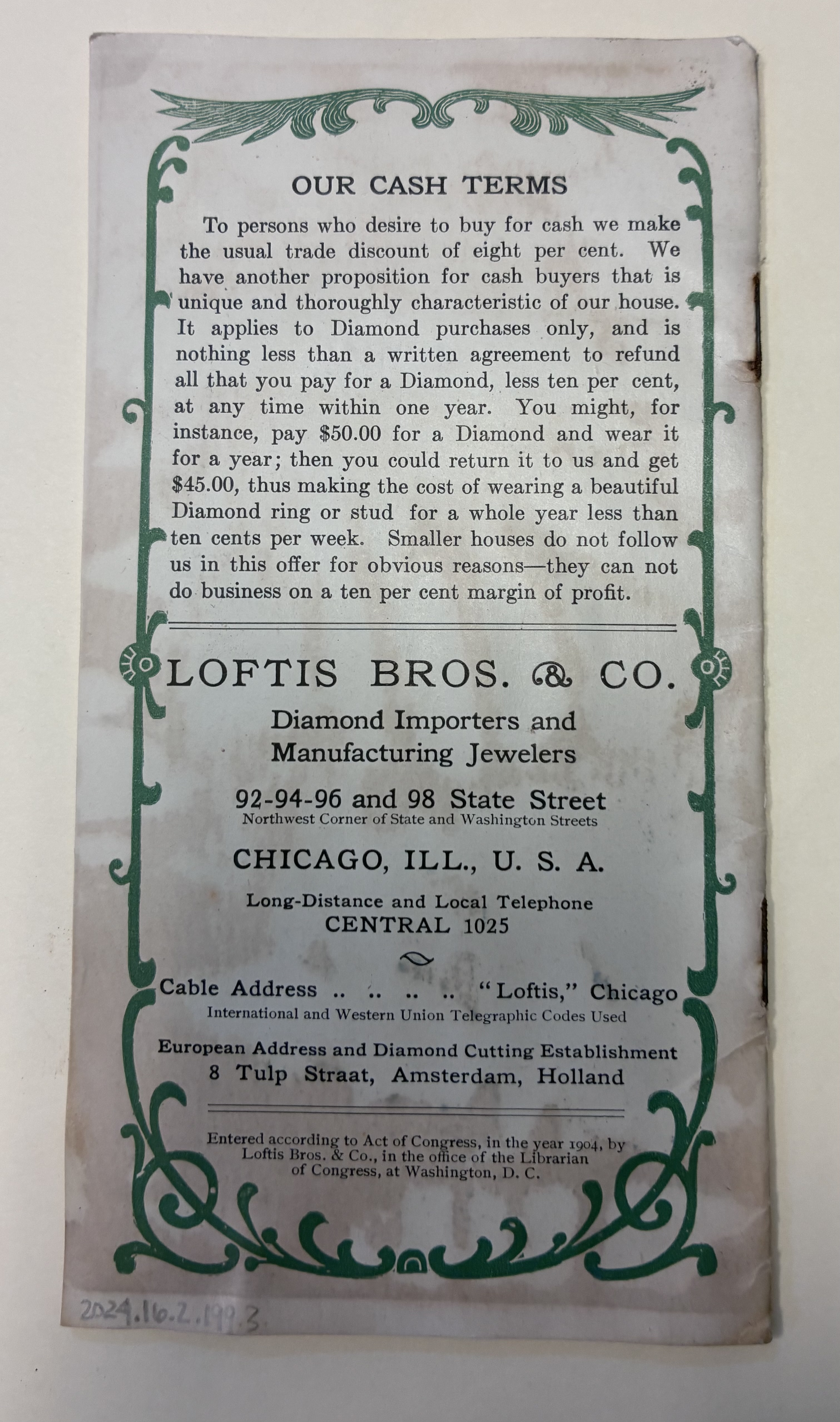 199.3: Loftis Bros & Co. Diamonds Watches Jewelry On Credit pamphlet - Contributor