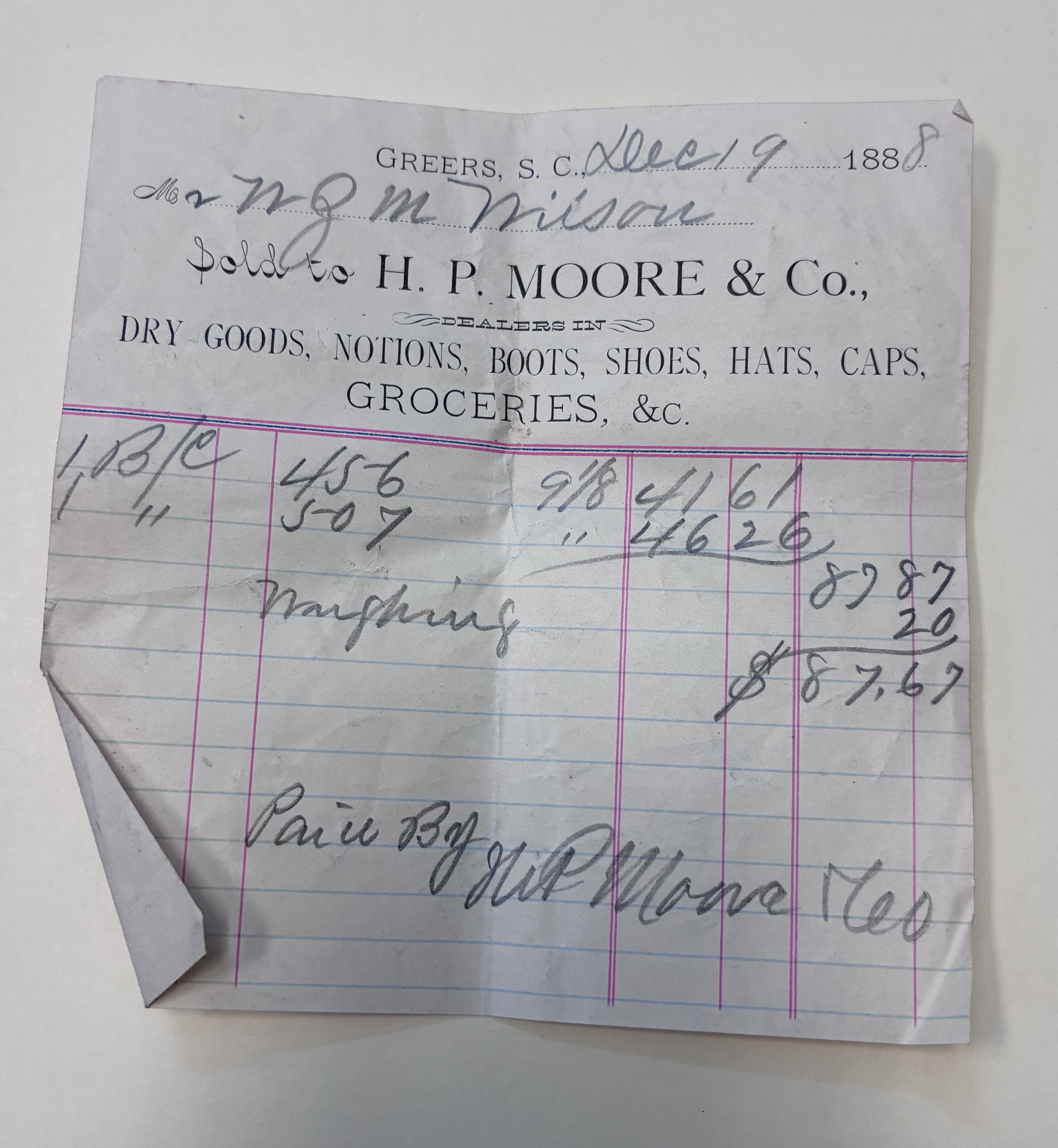 - Bale of Cotton Receipt, Greers, S.C., December 19, 1888