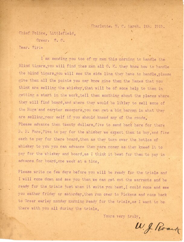 Letter 1 March 1915 W. J. Roark to Police Chief Littlefield