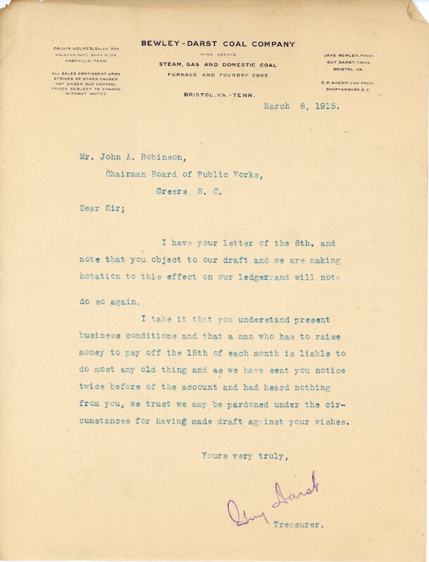 Letter 8 March 1915 Guy Darst to J. A. Robinson